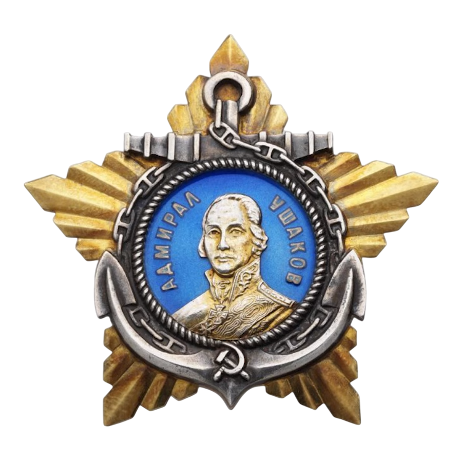 Орден Ушакова - высший орден ВМФ СССР. Морских офицеров почти не награждали «сухопутными» полководческими орденами Суворова, Кутузова, Хмельницкого и Невского. Вследствие этого появилась необходимость в учреждении особых наград. Два «морских» ордена СССР - Ушакова и Нахимова, также две «морских» медали, названные именами этих же адмиралов, были учреждены Указом Президиума ВС СССР от 3.03.1944 об учреждении военных орденов: ордена Ушакова I и II степени и ордена Нахимова I и II степени для награждения офицеров Военно-Морского Флота. Было определено старшинство ордена Ушакова над орденом Нахимова и поставлены в соответствия: