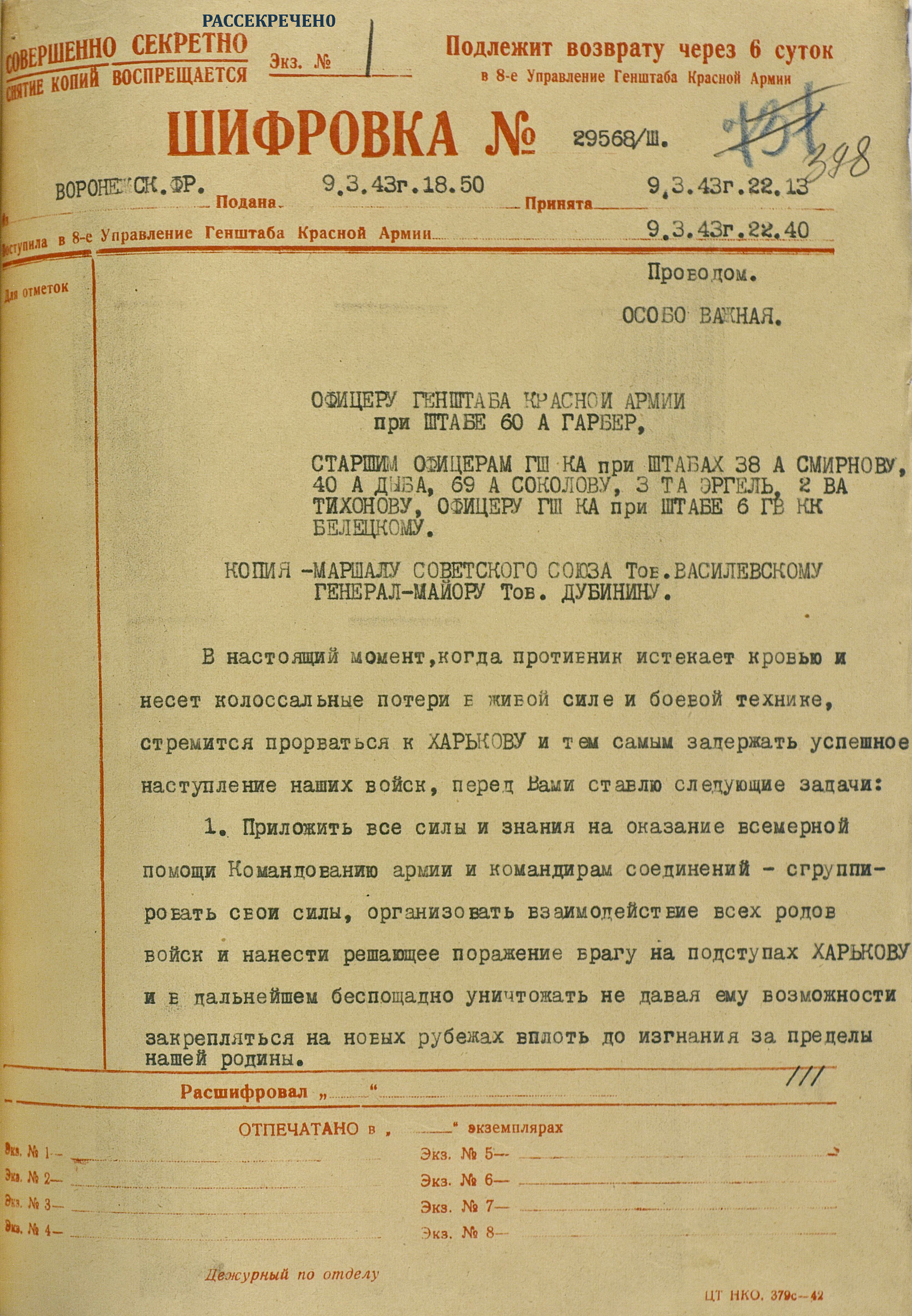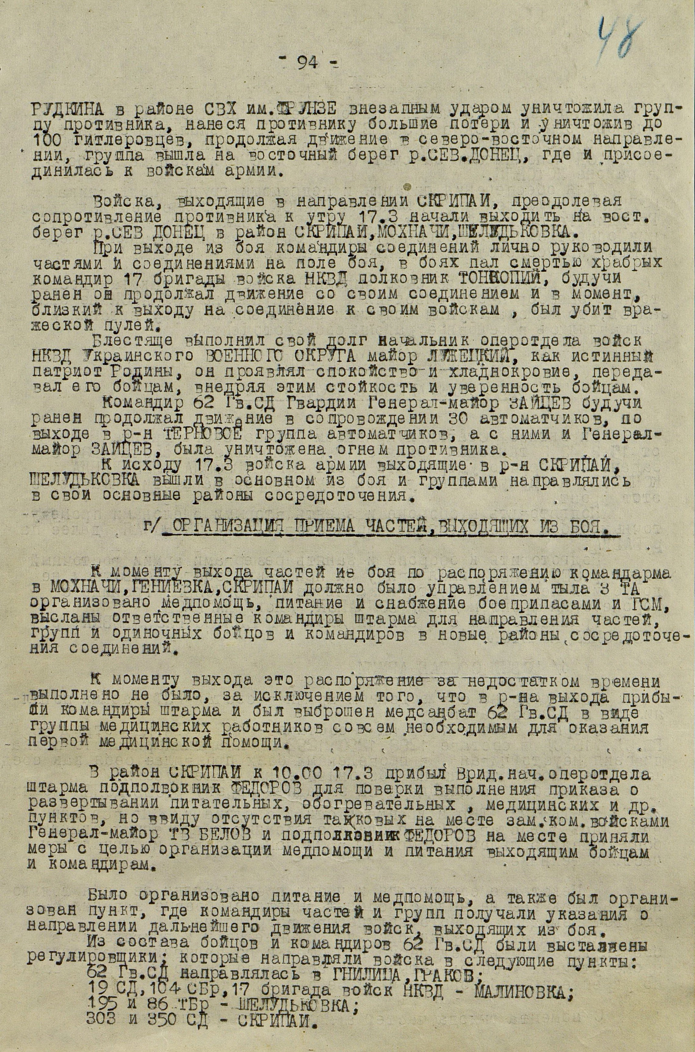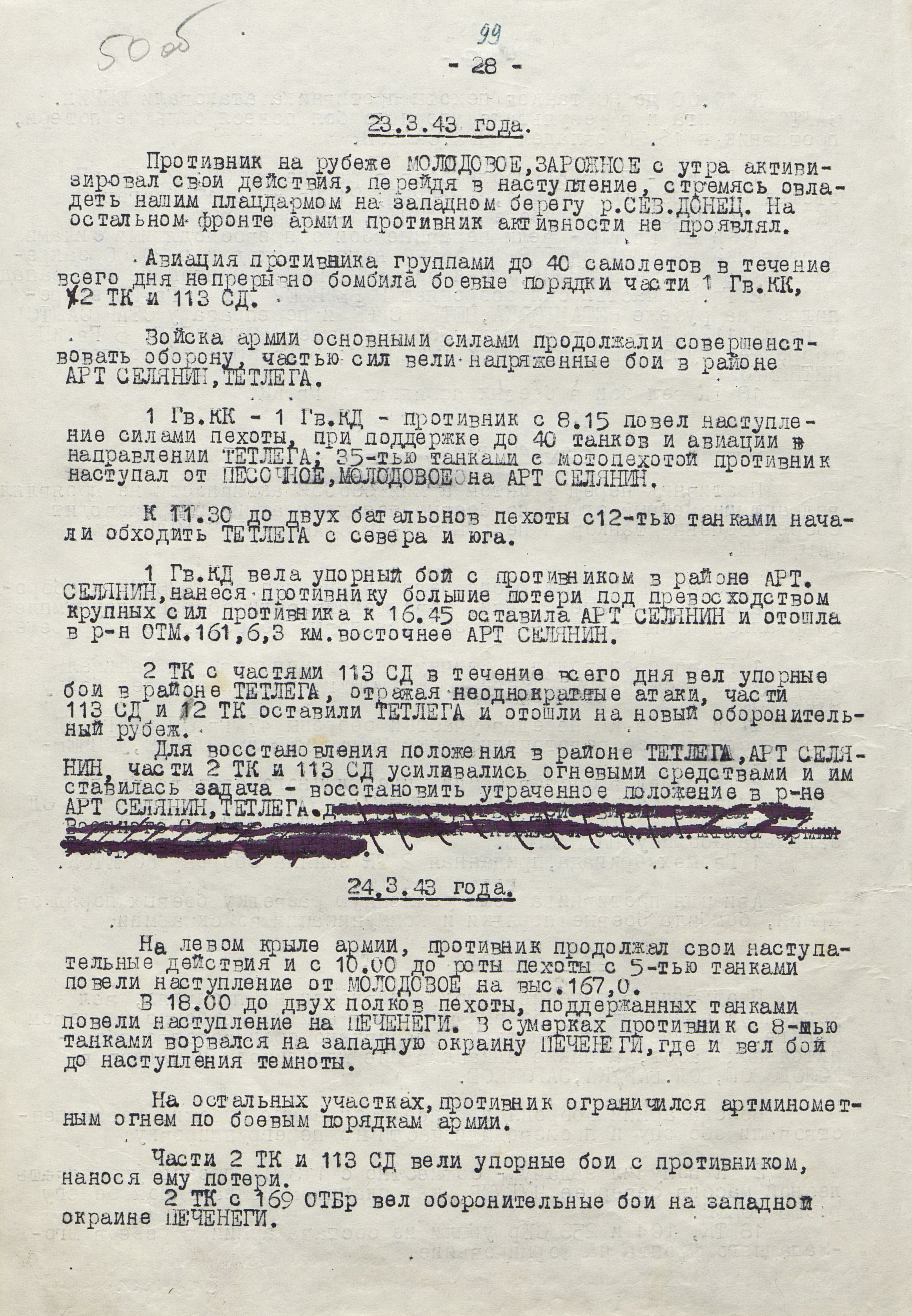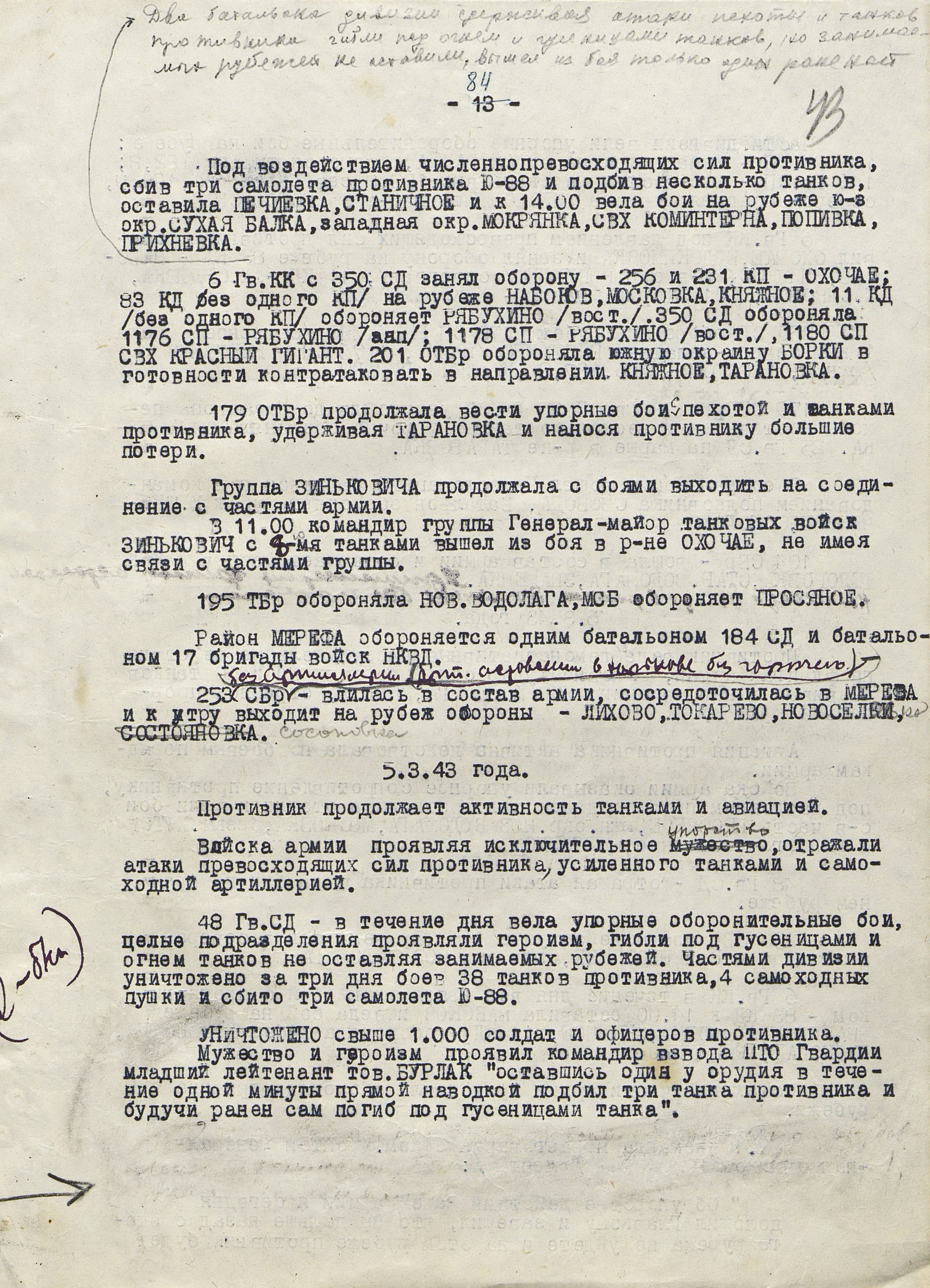4 марта 4-я танковая армия противника нанесла удар по частям 3-й танковой армии (генерал-лейтенант танковых войск П.С. Рыбалко). В течение двух дней советские войска стойко отражали атаки врага и не позволяли ему прорваться к Харькову с юга. Противник сумел лишь вклиниться в оборону 3-й танковой армии на 6-8 км. Немецкое командование было вынуждено перенести направление главного удара к западу и 6 марта нанесло удар в стык между 69-й (генерал-майор В.Д. Крюченкин) и 3-й танковой армиями. После тяжелых боёв советские войска 69-й и 3-й танковой армий оставили 7 марта Валки, а 9 марта - Люботин.