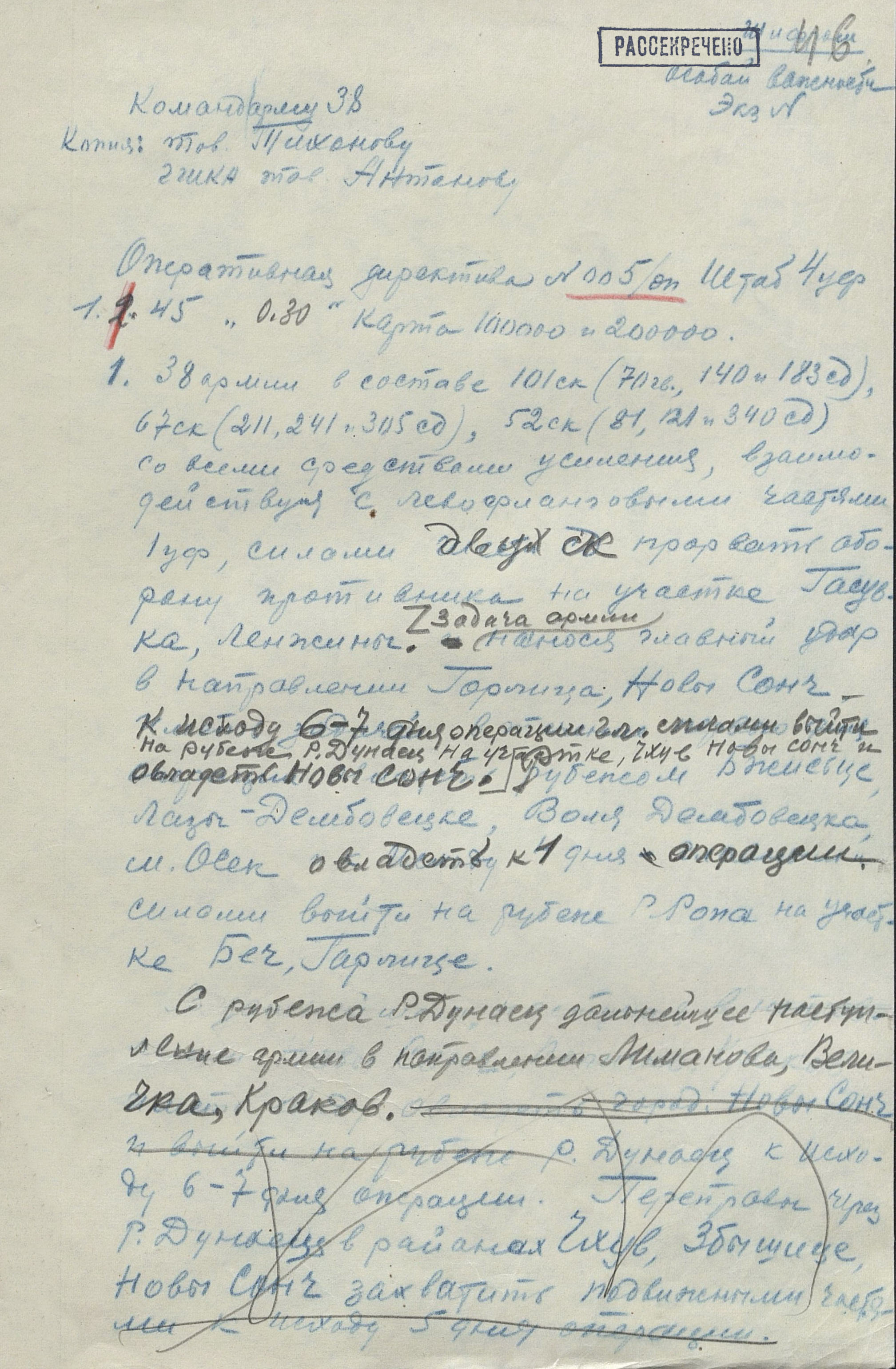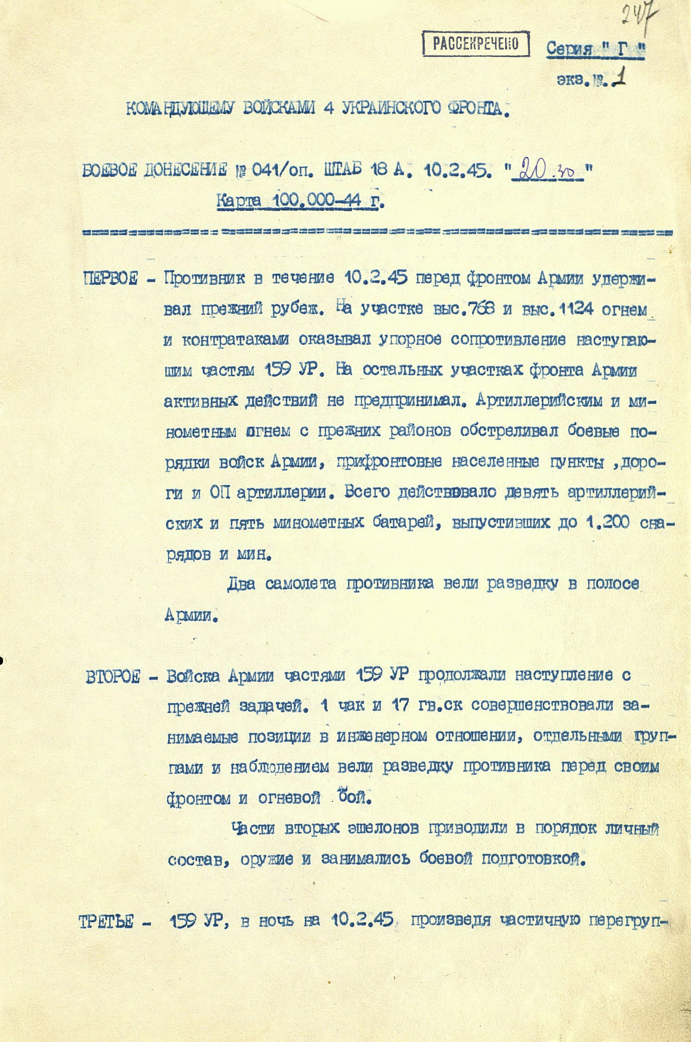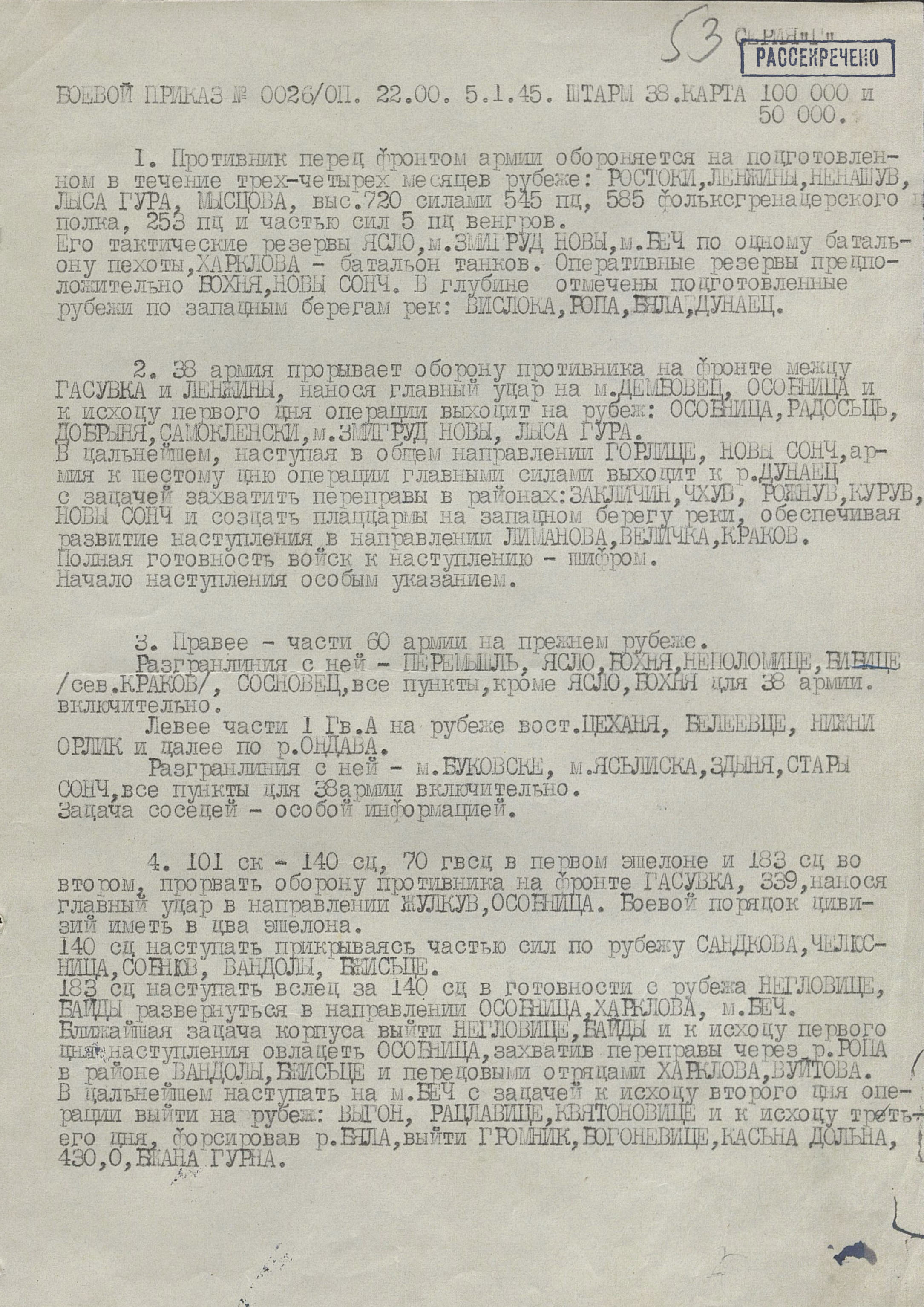 12 января в наступление перешли 18-я армия 4-го Украинского фронта, а также 40-я армия (генерал-лейтенанта Ф.Ф. Жмаченко), 27-я армия (генерал-полковник С.Г. Трофименко), 53-я армия (генерал-полковник И.М. Манагаров), 1-я конно-механизированная группа (генерал-лейтенант И.А. Плиев), румынская 4-я армия и 1-я армия 2-го Украинского фронта. За 4 дня боёв войска продвинулись на отдельных направлениях до 18 км. Немецкое командование усилило свою группировку, противостоявшую 18-й армии, перебросив с других направлений части 3 дивизий. Это обстоятельство, а также успешное наступление 59-й армии (генерал-лейтенант И.Т. Коровников) и 60-я армия (генерал-полковник П.А. Курочкин) 1-го Украинского фронта на краковском направлении создали благоприятные условия для действий главных сил 4-го Украинского фронта. 14 января освобождён город Лученец, деревня Плешивец. Противник, опасаясь окружения 17-й армии, в ночь на 16 января начал отводить её в направлении Кракова. Войска 38-й армии и введённая в сражение подвижная группа фронта, преследуя отходившего противника, к исходу четвёртого дня операции продвинулись на 80 км и вышли к р. Дунаец.