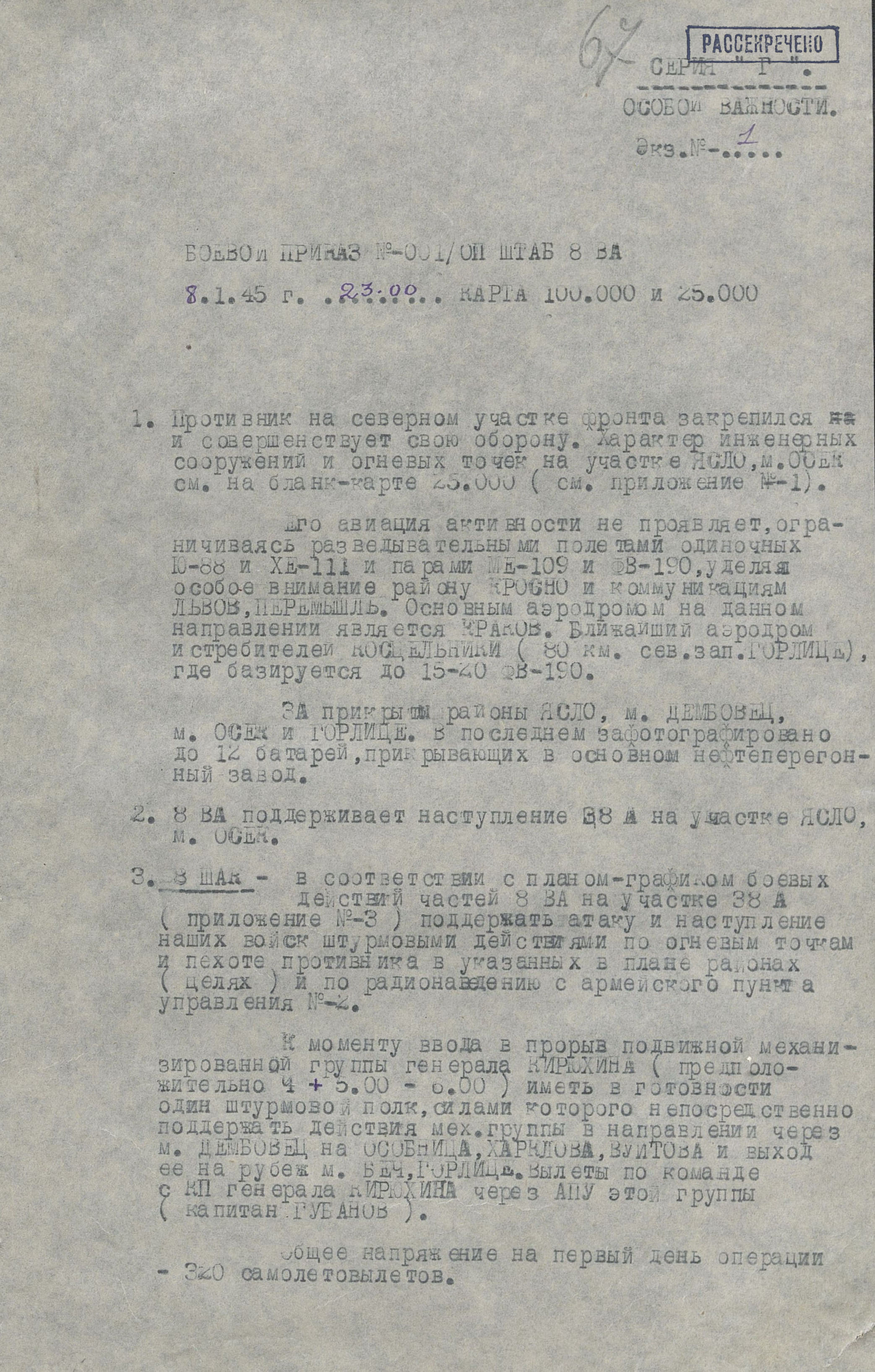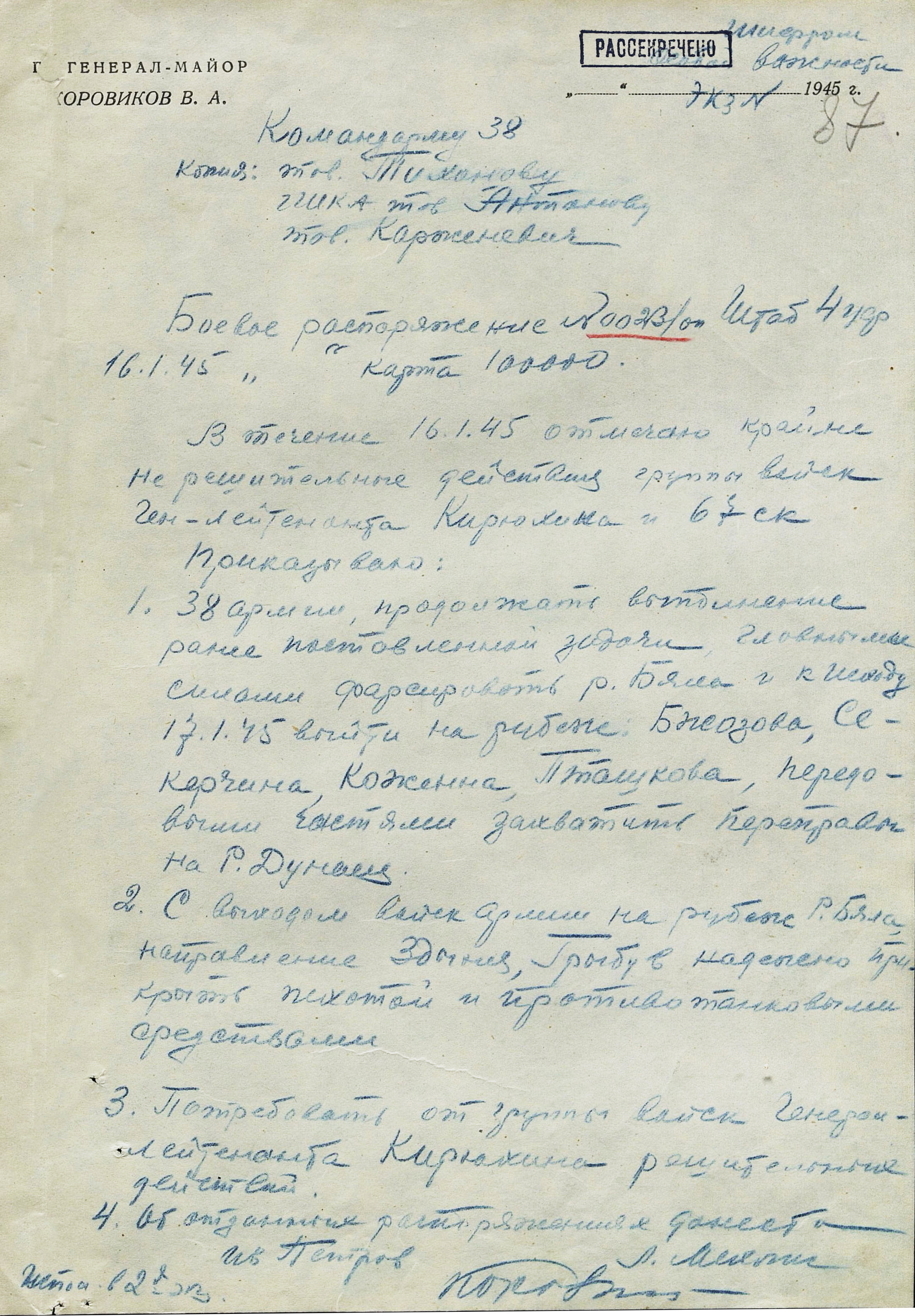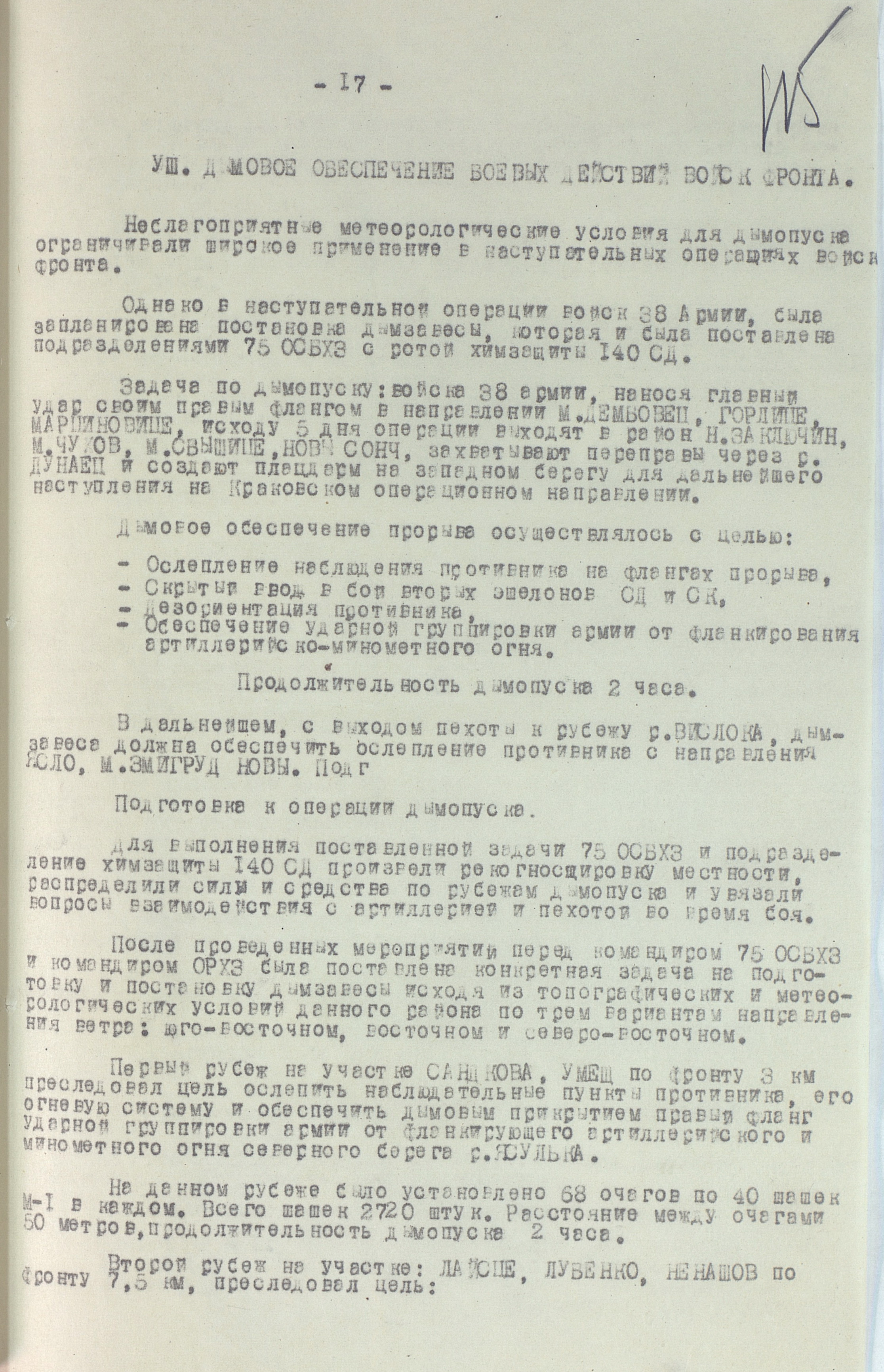 12 января в наступление перешли 18-я армия 4-го Украинского фронта, а также 40-я армия (генерал-лейтенанта Ф.Ф. Жмаченко), 27-я армия (генерал-полковник С.Г. Трофименко), 53-я армия (генерал-полковник И.М. Манагаров), 1-я конно-механизированная группа (генерал-лейтенант И.А. Плиев), румынская 4-я армия и 1-я армия 2-го Украинского фронта. За 4 дня боёв войска продвинулись на отдельных направлениях до 18 км. Немецкое командование усилило свою группировку, противостоявшую 18-й армии, перебросив с других направлений части 3 дивизий. Это обстоятельство, а также успешное наступление 59-й армии (генерал-лейтенант И.Т. Коровников) и 60-я армия (генерал-полковник П.А. Курочкин) 1-го Украинского фронта на краковском направлении создали благоприятные условия для действий главных сил 4-го Украинского фронта. 14 января освобождён город Лученец, деревня Плешивец. Противник, опасаясь окружения 17-й армии, в ночь на 16 января начал отводить её в направлении Кракова. Войска 38-й армии и введённая в сражение подвижная группа фронта, преследуя отходившего противника, к исходу четвёртого дня операции продвинулись на 80 км и вышли к р. Дунаец.