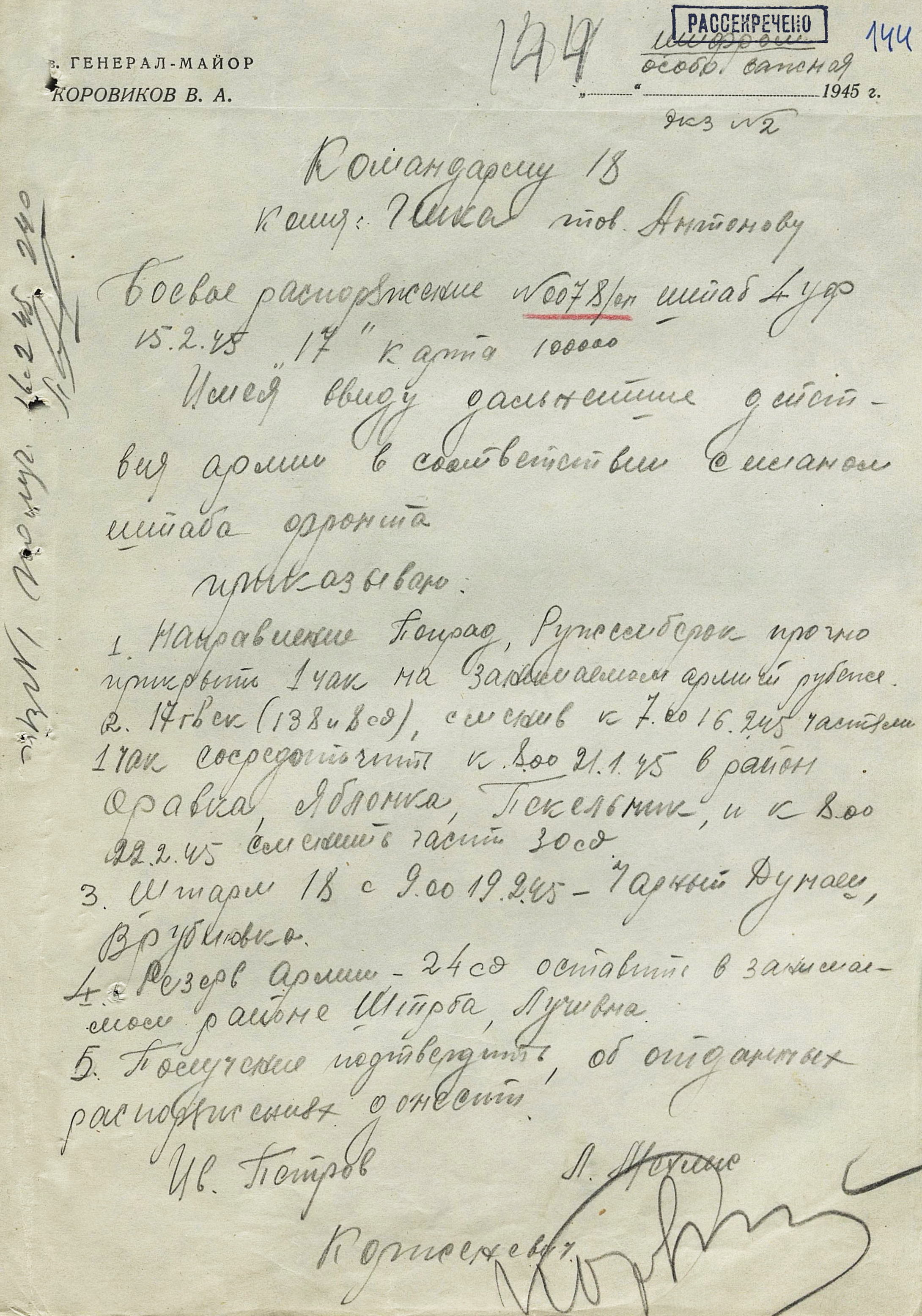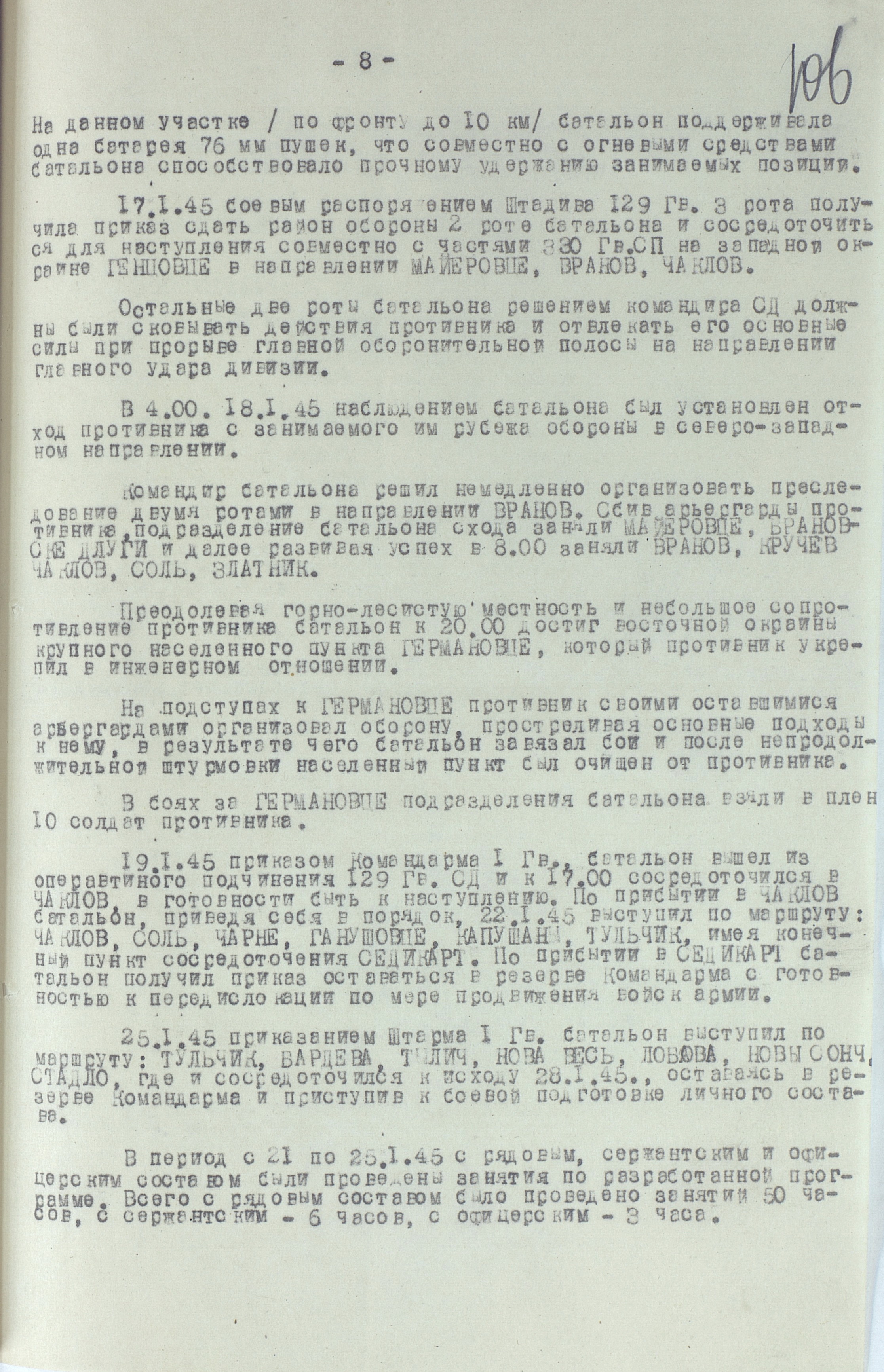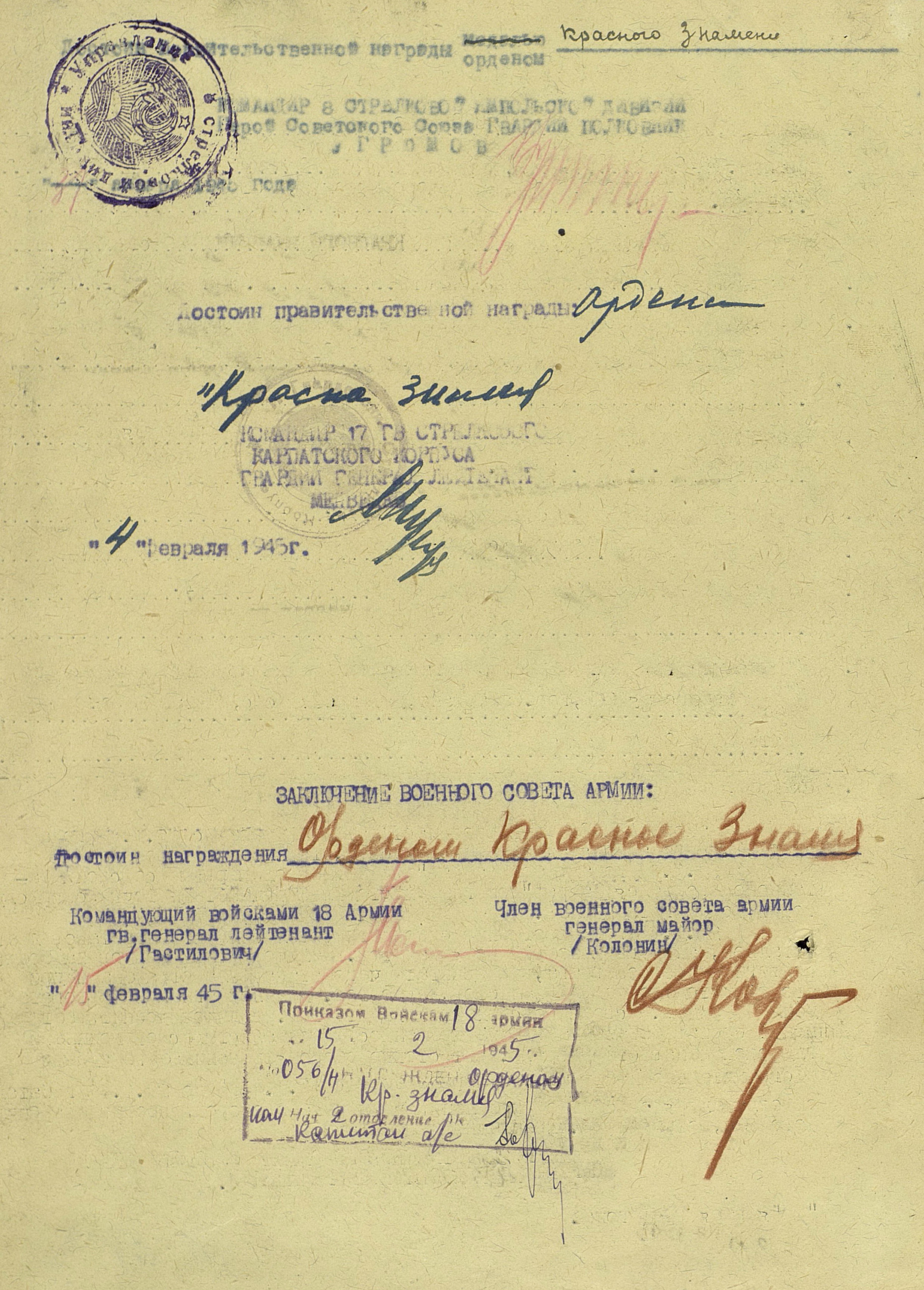 18 января перешла в наступление 1-я гв. армия вместе с приданным ей чехословацким 1-м армейским корпусом. Отбросив к исходу дня противника на 22 км, она на следующий день освободила важный узел коммуникаций г. Прешов. В тот же день 18-я армия освободила второй по величине промышленный, административный и культурный центр восточной Словакии г. Кошице (в апреле он стал местом пребывания вновь сформированного правительства Чехословакии), а также город Прешов. 28 января освобождён Попрад, 29 января – Новы-Тарг. Развивая успех, войска 4-го Украинского фронта к концу января вышли к главному хребту Западных Карпат, а войска правого крыла 2-го Украинского фронта - на рубеж Брезно, восточнее Немце. Командующий 4-м Украинским фронтом уточнил задачи войскам: 38-я армия должна была овладеть г. Бельско-Бяла и наступать в направлении Моравска-Остравы; 1-я гв. армия - на Живец, Цешин; 18-я армия с чехословацким 1-м армейским корпусом (с 21 января в составе 18-й армии) - на Ружомберок, Жилину. 12 февраля 1-я гв. армия совместно с 38-й армией овладела г. Бельско-Бяла - мощным узлом сопротивления противника на подступах к Моравска- Остравскому промышленному району. К середине февраля войска 4-го Украинского фронта вышли к заранее подготовленному противником оборонительному рубежу по линии западнее Струмень, - восточнее Липтовски-Свети-Микулаш, прорвать который с ходу не смогли, и с 18 февраля по решению Ставки ВГК перешли к обороне, завершив Западно-Карпатскую наступательную операцию. Этим же решением правому крылу 2-го Украинского фронта поставлена задача выйти к р. Грон.