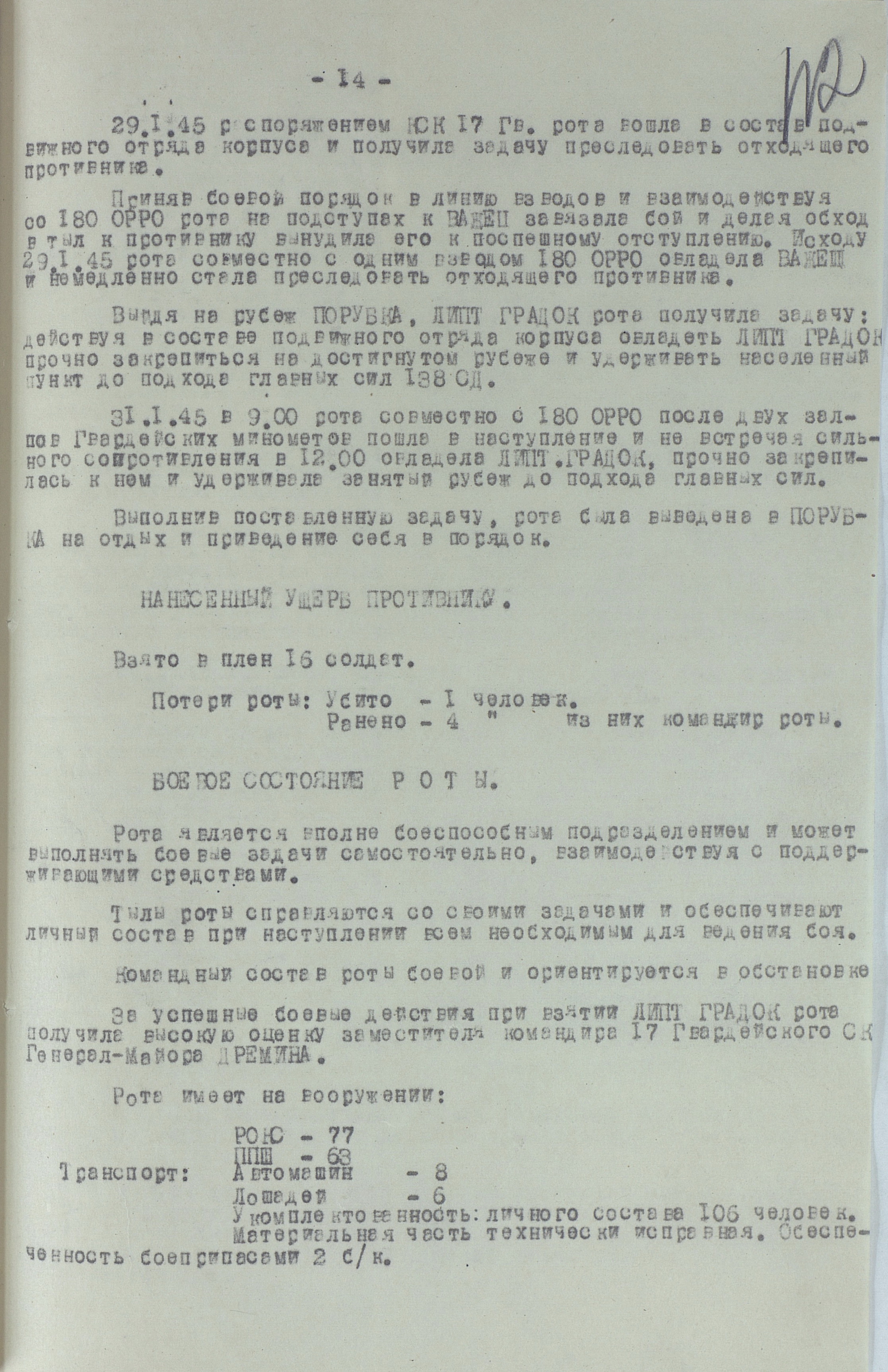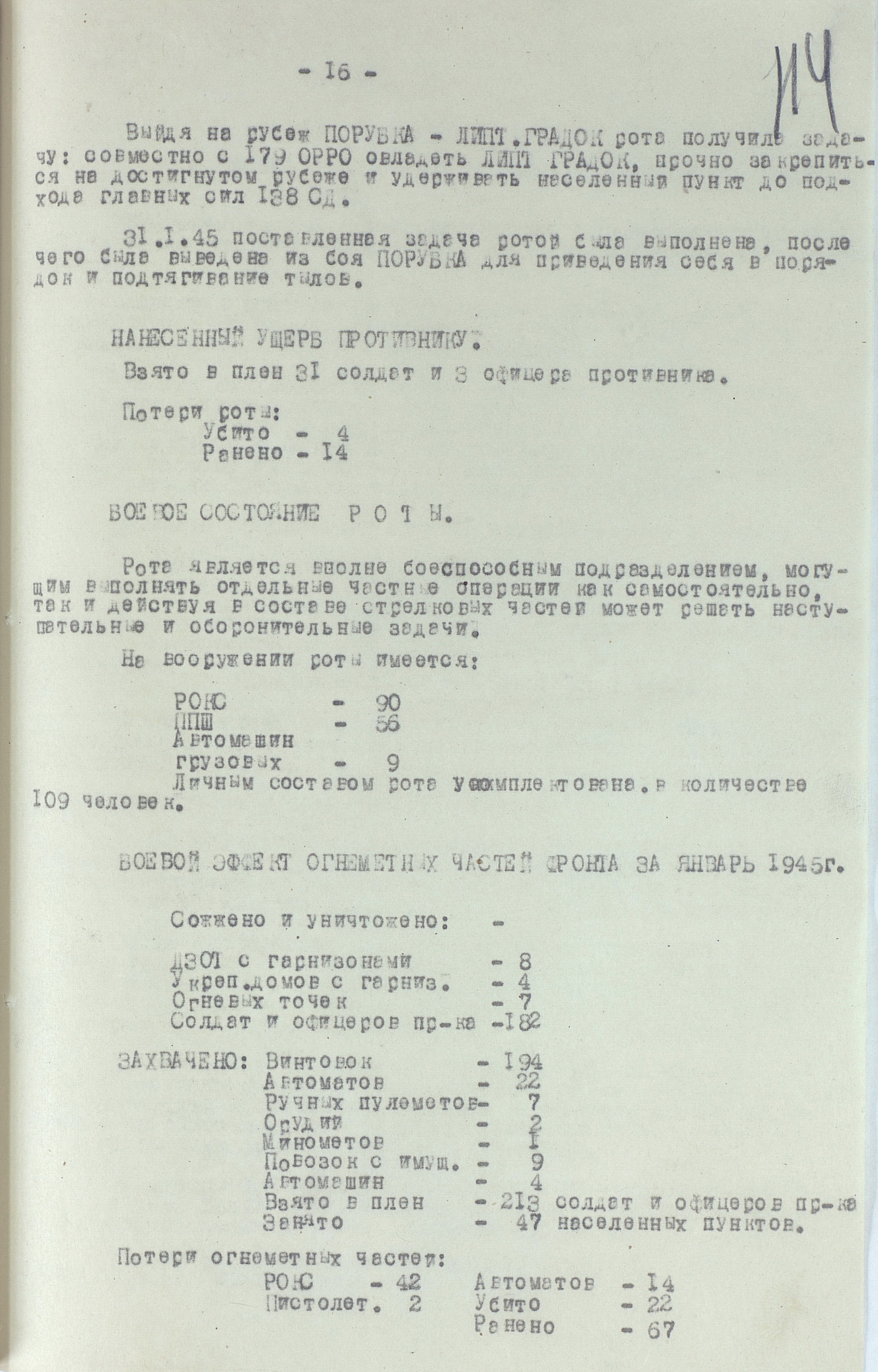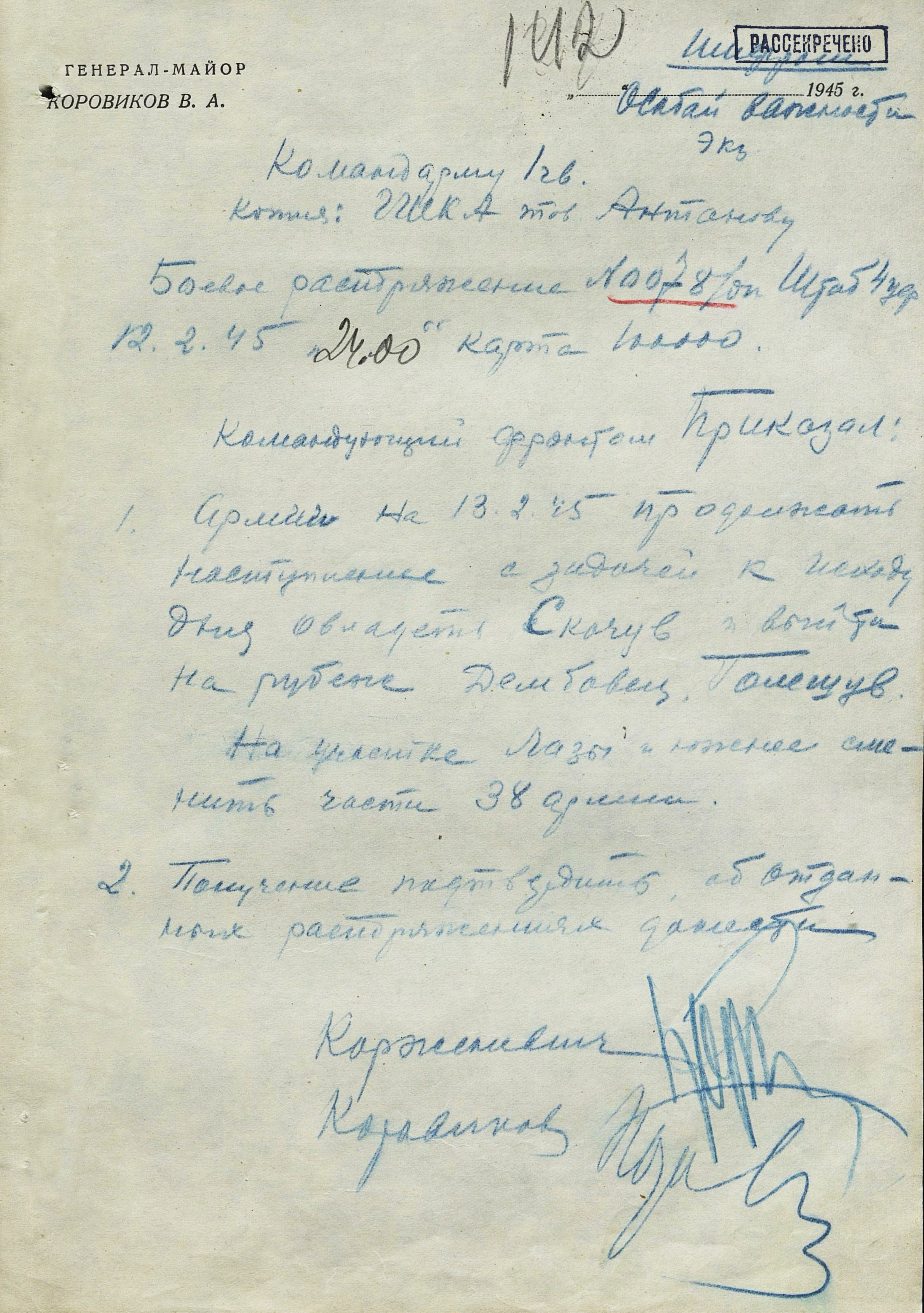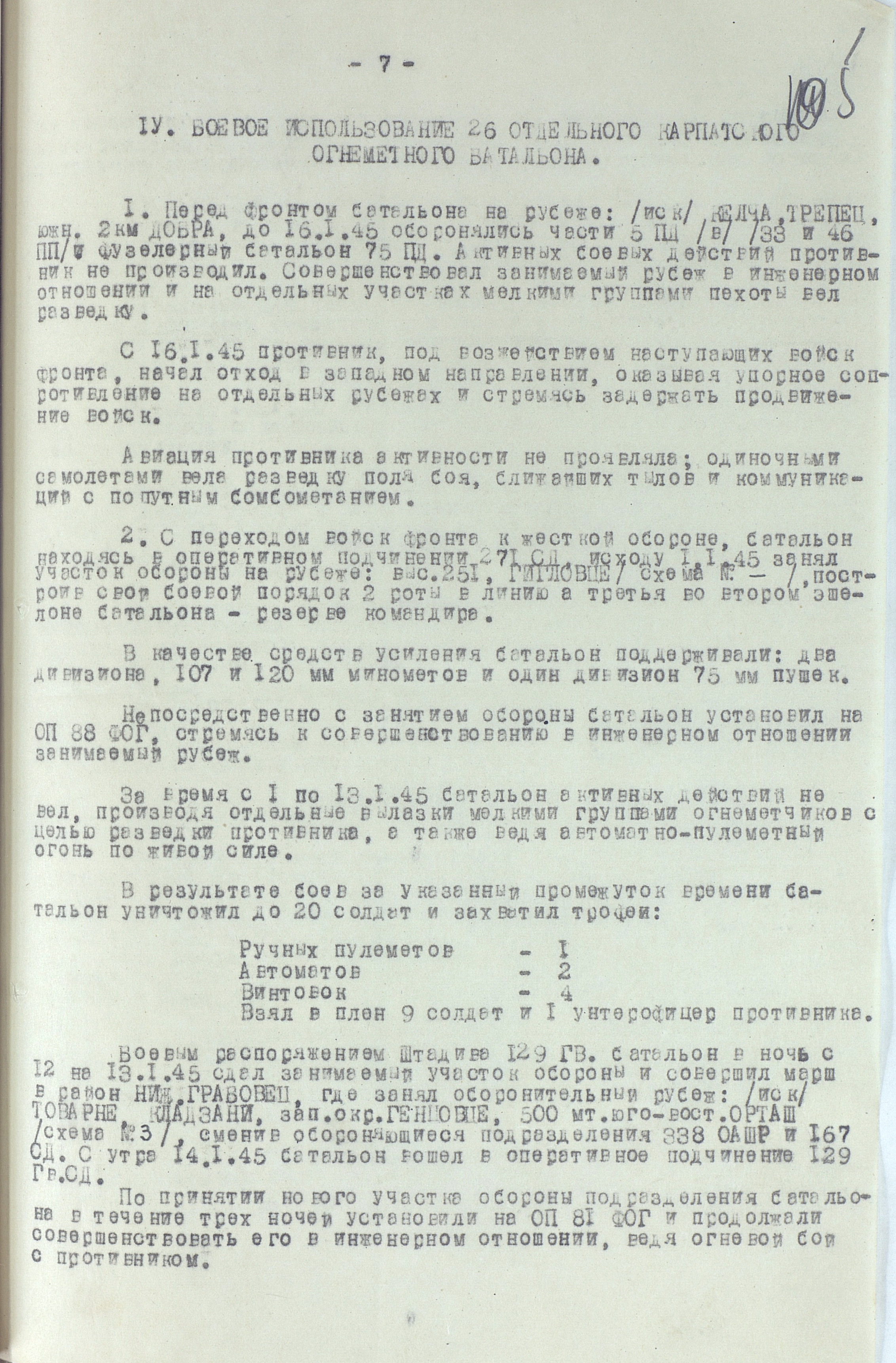 18 января перешла в наступление 1-я гв. армия вместе с приданным ей чехословацким 1-м армейским корпусом. Отбросив к исходу дня противника на 22 км, она на следующий день освободила важный узел коммуникаций г. Прешов. В тот же день 18-я армия освободила второй по величине промышленный, административный и культурный центр восточной Словакии г. Кошице (в апреле он стал местом пребывания вновь сформированного правительства Чехословакии), а также город Прешов. 28 января освобождён Попрад, 29 января – Новы-Тарг. Развивая успех, войска 4-го Украинского фронта к концу января вышли к главному хребту Западных Карпат, а войска правого крыла 2-го Украинского фронта - на рубеж Брезно, восточнее Немце. Командующий 4-м Украинским фронтом уточнил задачи войскам: 38-я армия должна была овладеть г. Бельско-Бяла и наступать в направлении Моравска-Остравы; 1-я гв. армия - на Живец, Цешин; 18-я армия с чехословацким 1-м армейским корпусом (с 21 января в составе 18-й армии) - на Ружомберок, Жилину. 12 февраля 1-я гв. армия совместно с 38-й армией овладела г. Бельско-Бяла - мощным узлом сопротивления противника на подступах к Моравска- Остравскому промышленному району. К середине февраля войска 4-го Украинского фронта вышли к заранее подготовленному противником оборонительному рубежу по линии западнее Струмень, - восточнее Липтовски-Свети-Микулаш, прорвать который с ходу не смогли, и с 18 февраля по решению Ставки ВГК перешли к обороне, завершив Западно-Карпатскую наступательную операцию. Этим же решением правому крылу 2-го Украинского фронта поставлена задача выйти к р. Грон.
