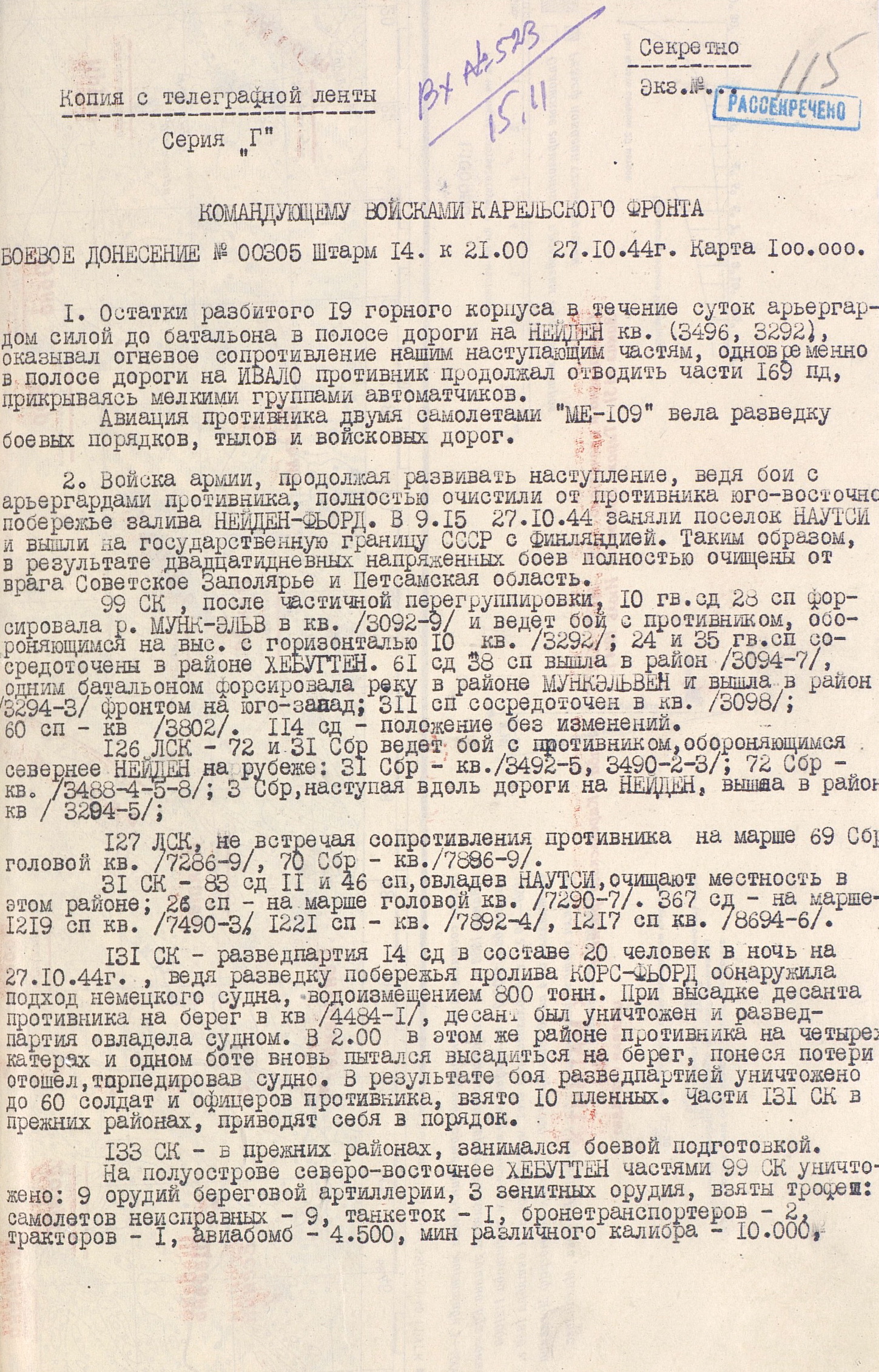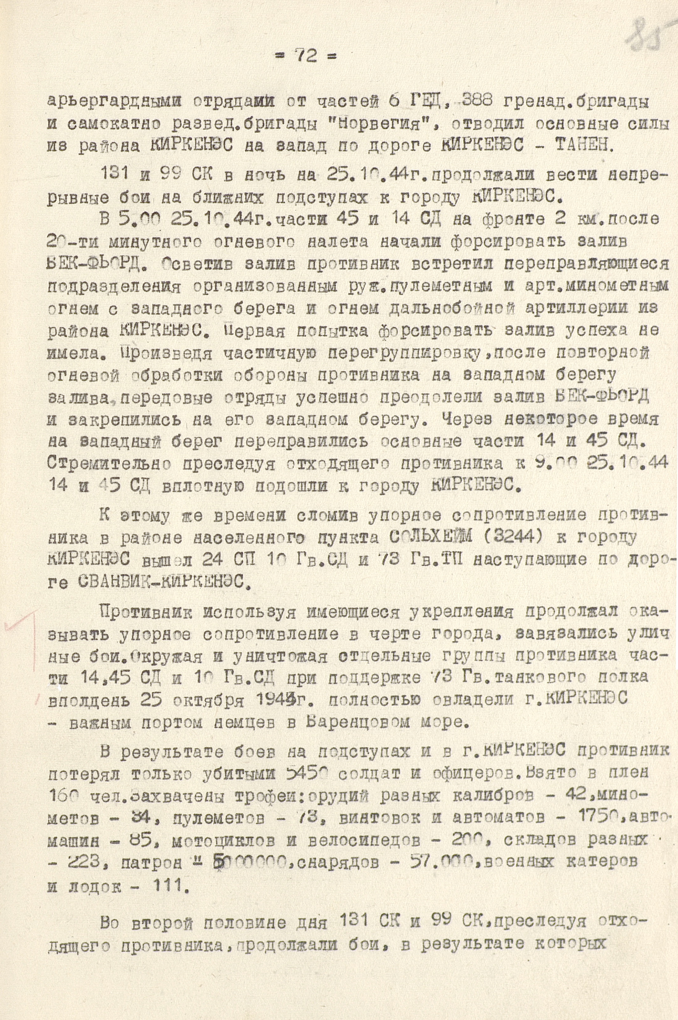 За мужество и героизм, проявленные при выполнении боевых заданий командования в суровых условиях Заполярья, 70 частей и соединений были награждены боевыми орденами, а 51 - присвоены почётные наименование Печенгских и Киркенесских.