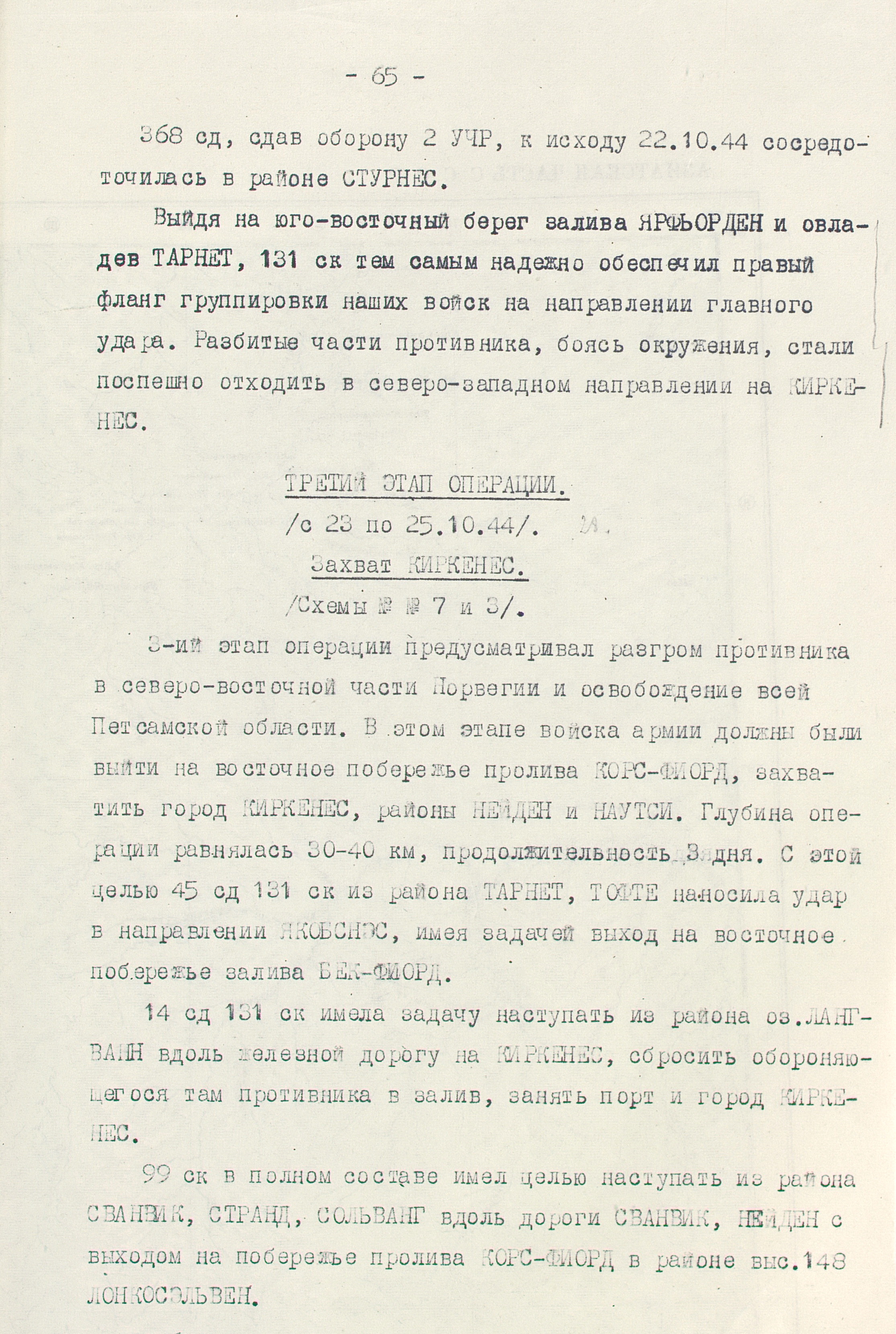 Перед Карельским фронтом (генерал армии, с 26.10.1944 г. маршал Советского Союза К.А. Мерецков) стояла задача силами 14-й армии при содействии 7-й воздушной армии и Северного флота окружить и уничтожить главные силы 19-го горнострелкового корпуса противника и освободить г. Петсамо (Печенга). В дальнейшем, развивая наступление в западном и северо-западном направлениях, овладеть районом никелевых разработок, на 10 - 15-й день операции выйти на государственную границу с Норвегией и завершить освобождение Советского Заполярья.