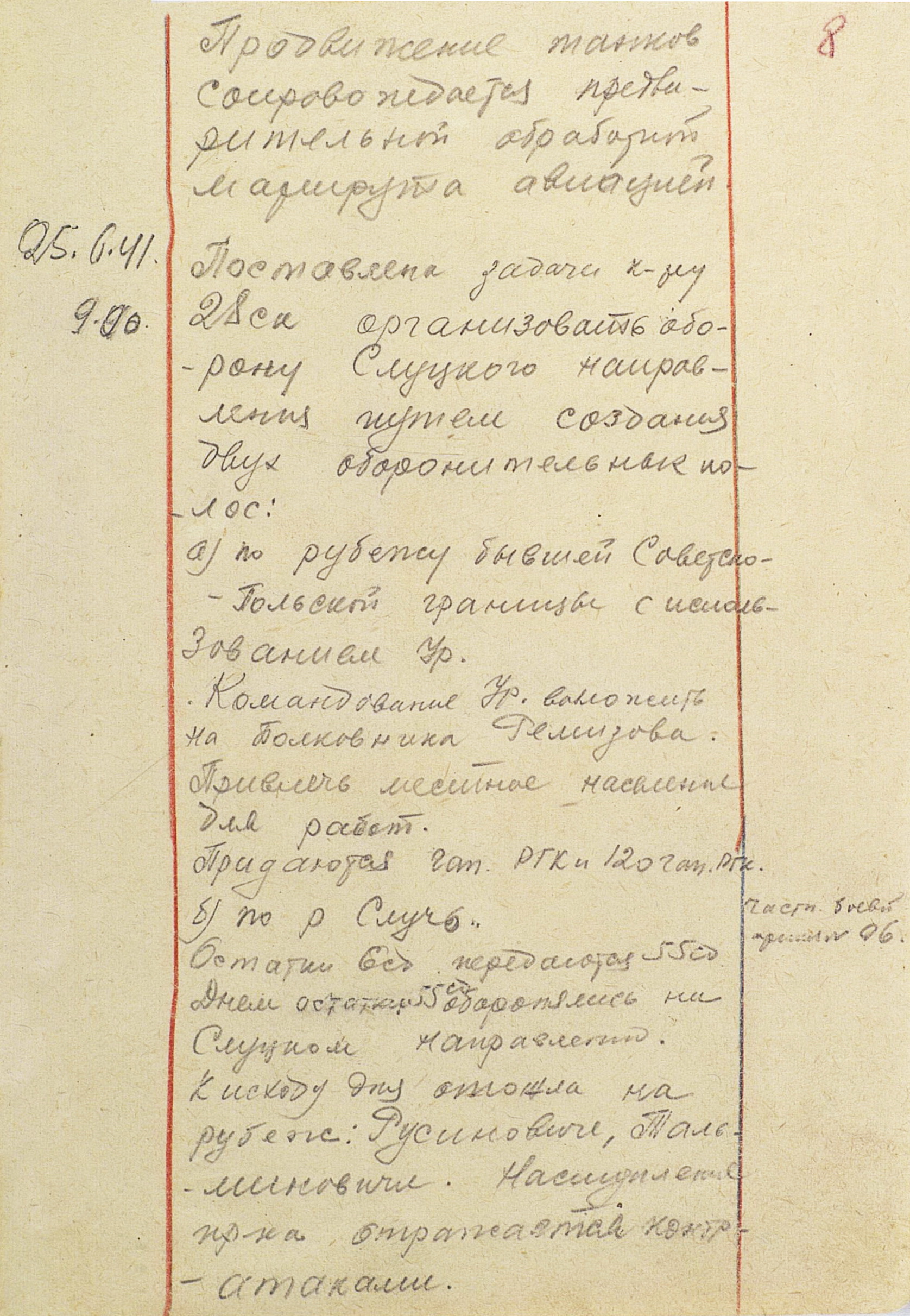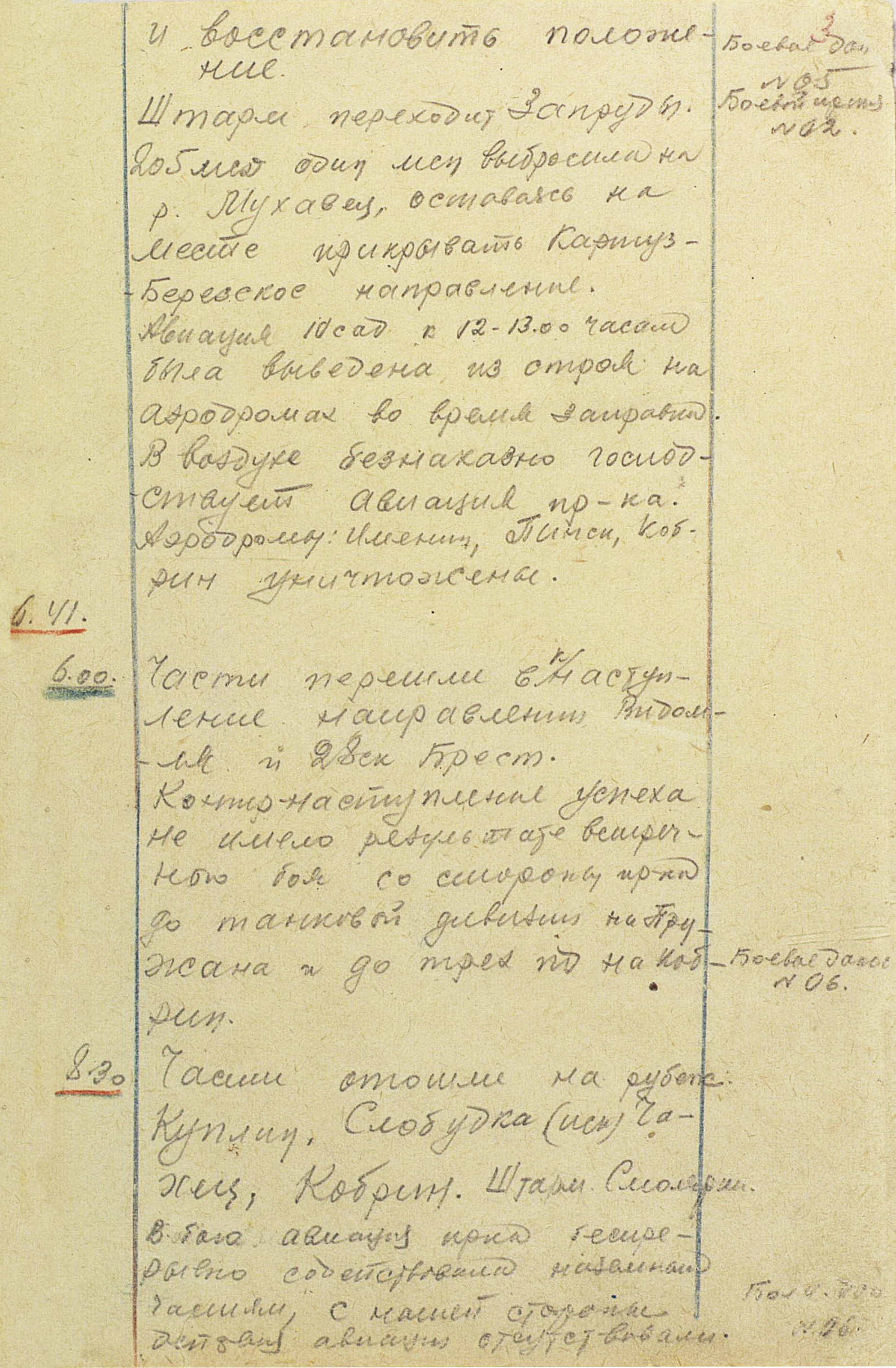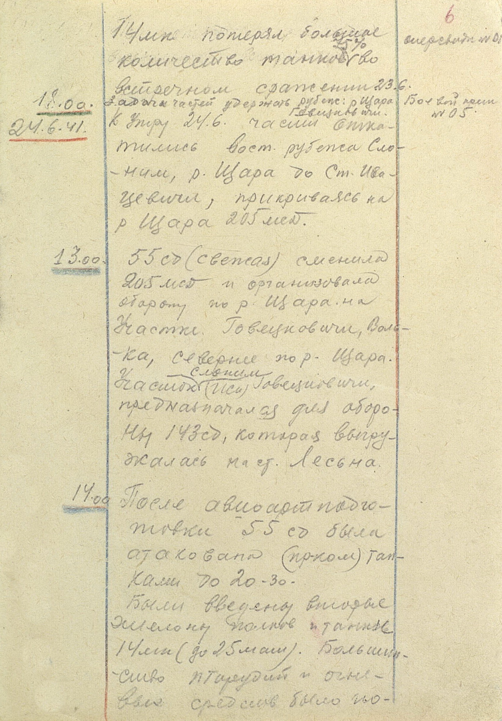 Наступлению на кратчайшем направлении, ведущем через Минск и Смоленск на Москву, противник придавал первостепенное значение. Согласно плану «Барбаросса» он сконцентрировал здесь самую мощную группировку - группу армий «Центр» [9-ю и 4-ю армии, 2-я и 3-я (до 25 июня в полосе Северо-Западного фронта) танковые группы (ТГр), 2-й воздушный флот - всего (без 3-й ТГр) 634,9 тыс. человек, 12 500 орудий и миномётов, 810 танков, 1677 боевых самолетов; генерал-фельдмаршал Ф. Бок]. Немецкое командование планировало прорвать оборону советских войск у Бреста и Сувалок на флангах т. н. сувалкинского выступа и, развивая наступление в общем направлении на Минск, окружить и уничтожить основные силы Западного Особого военного округа в западной части Белоруссии, затем наступать на Смоленск и далее на Москву. Построение войск было в один эшелон, средняя оперативная плотность составляла около 10 км на дивизию, а на направлениях главных ударов - 5-6 км. Это позволяло противнику нанести мощный первоначальный удар и достичь значительного превосходства в силах и средствах над советскими войсками в первые дни войны.