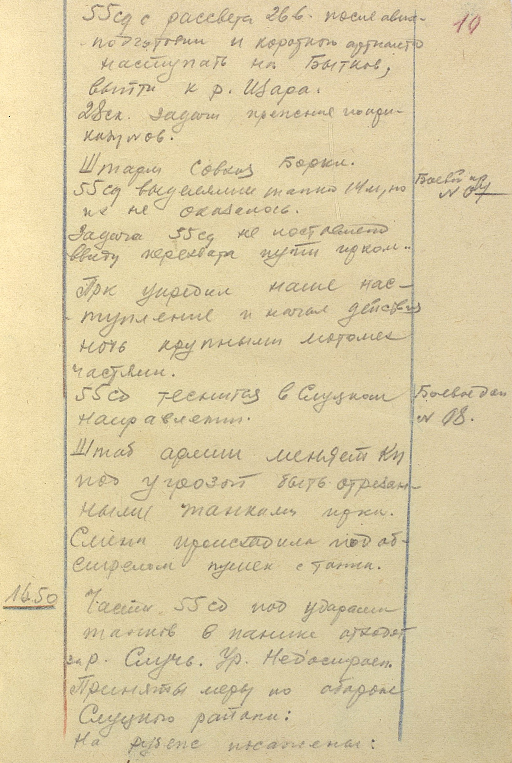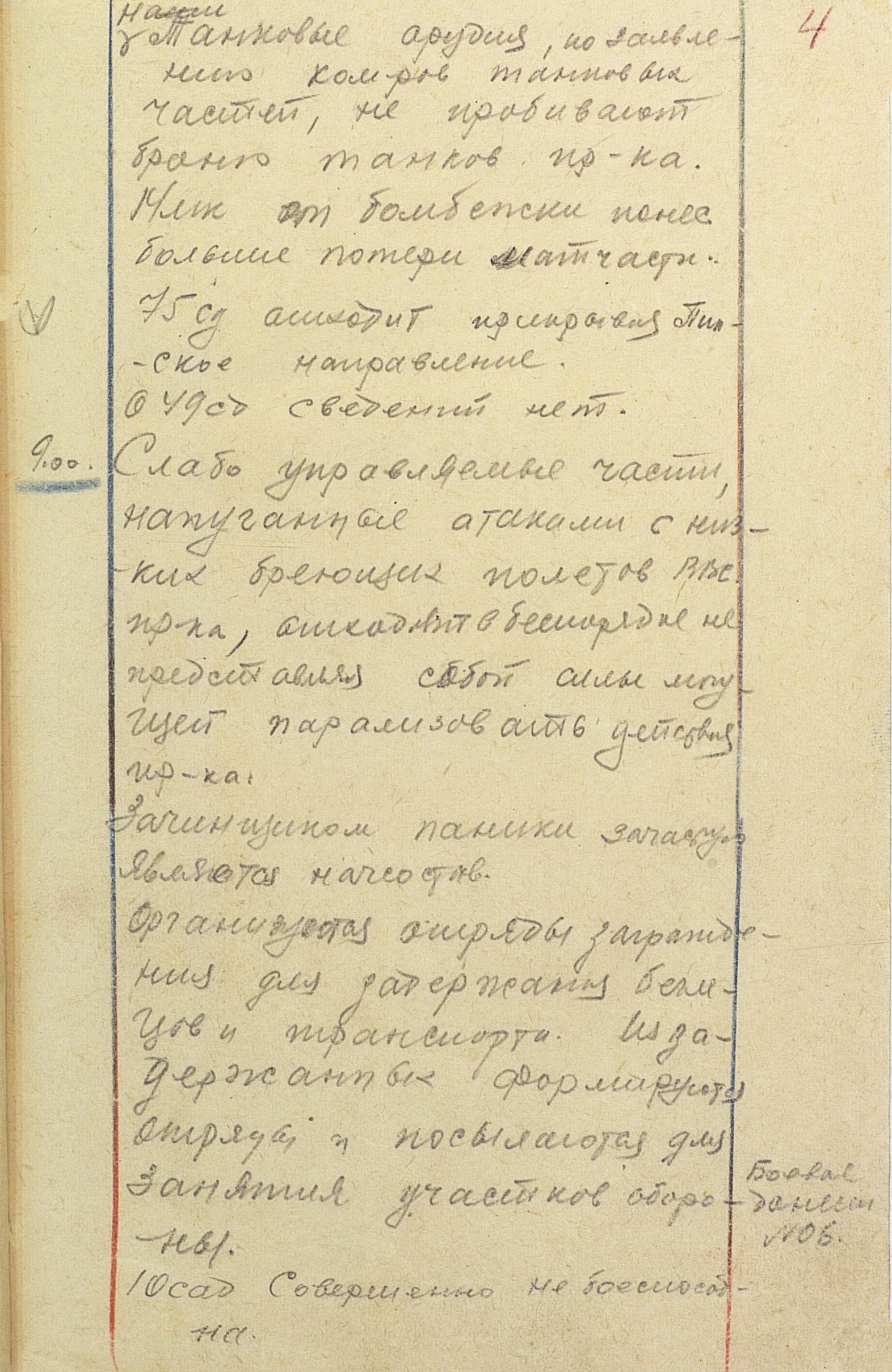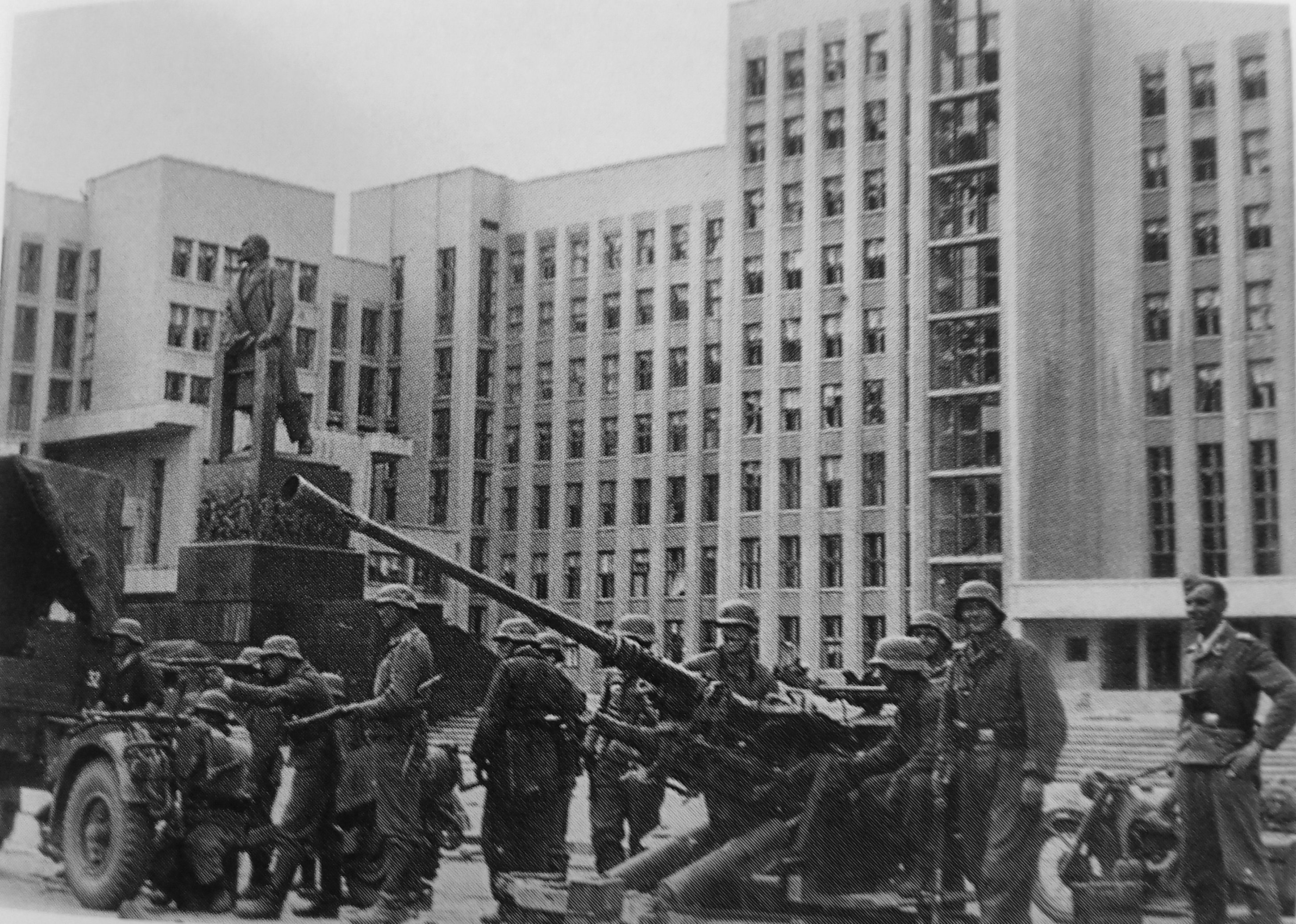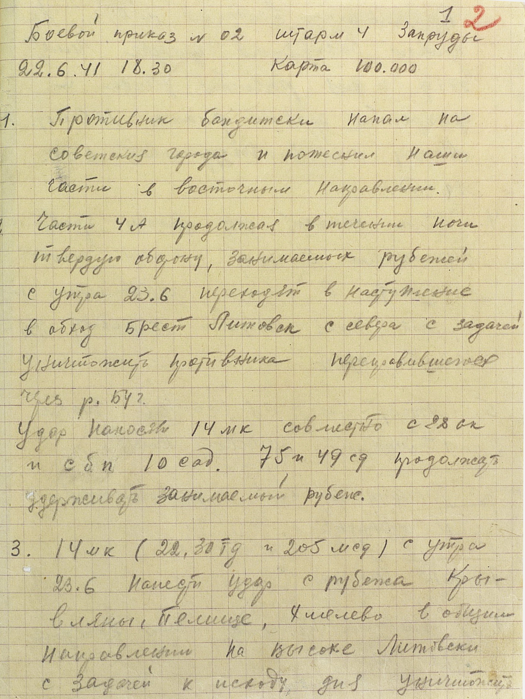 Наступлению на кратчайшем направлении, ведущем через Минск и Смоленск на Москву, противник придавал первостепенное значение. Согласно плану «Барбаросса» он сконцентрировал здесь самую мощную группировку - группу армий «Центр» [9-ю и 4-ю армии, 2-я и 3-я (до 25 июня в полосе Северо-Западного фронта) танковые группы (ТГр), 2-й воздушный флот - всего (без 3-й ТГр) 634,9 тыс. человек, 12 500 орудий и миномётов, 810 танков, 1677 боевых самолетов; генерал-фельдмаршал Ф. Бок]. Немецкое командование планировало прорвать оборону советских войск у Бреста и Сувалок на флангах т. н. сувалкинского выступа и, развивая наступление в общем направлении на Минск, окружить и уничтожить основные силы Западного Особого военного округа в западной части Белоруссии, затем наступать на Смоленск и далее на Москву. Построение войск было в один эшелон, средняя оперативная плотность составляла около 10 км на дивизию, а на направлениях главных ударов - 5-6 км. Это позволяло противнику нанести мощный первоначальный удар и достичь значительного превосходства в силах и средствах над советскими войсками в первые дни войны.