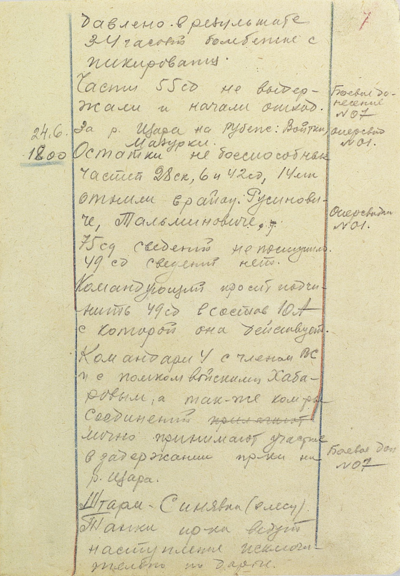 22 июня противник нанёс главный удар силами 4-й армии и 2-й танковой группы прорвал оборону советской 4-й армии и устремился на Барановичи, другой удар – 9-й армией и 3-й танковой группой смял левый фланг 11-й армии Северо-Западного фронта и, охватывая с севера войска советской 3-й армии, заставил их отходить на юго-восток. К исходу дня противник продвинулся на 20-60 км, вышел к городам Кобрин, Гродно, создав угрозу охвата главных сил Западного фронта в белостокском выступе. Немецкая авиация, уничтожив за день 738 самолётов Западного фронта, захватила господство в воздухе. 23-24 июня советские войска нанесли контрудары по вклинившимся соединениям 3-й танковой группы силами 3-й армии в районе Гродно, а по 2-й танковой группе силами 4-й армии в районе Пружан, но остановить врага не смогли. Немецкая 3-я танковая группа на вильнюсско-минском направлении продвинулась на 230 км. 25 июня главные силы Западного фронта с разрешения Ставки Главного Командования начали отход на восток и к исходу 29 июня отступили на рубеж старой государственной границы. К исходу 27 июня соединения немецких 2-й и 3-й танковых групп, продвинувшись до 400 км, захватили Гродно, Белосток, Лиду, Барановичи, Слуцк, Пинск, Волковыск и 28 июня соединились в районе Минска. После захвата Минска немцы устремились на Борисов, находившийся в 70 километров от него. Несмотря на ожесточённое сопротивление советских войск, 2 июля город был захвачен. В результате до 11 советских дивизий 3, 10-й и 13-й армий оказались в окружении западнее Минска и вели там бои до 8 июля, сковав до 25 вражеских дивизий. Продолжали сражаться защитники Брестской крепости. Малочисленные соединения фронта отходили на восток. Для восстановления стратегической обороны Ставка Главного Командования передала со 2 июля Западному фронту 19-ю, 20-ю, 21-ю и 22-ю армии, которые ещё выдвигались к фронту. Противник, стремясь быстрее выйти к Смоленску, развернул наступление на Витебск, Оршу, Могилёв и Бобруйск. Чтобы задержать немецкие войска и выиграть время для организации обороны, 6–10 июля два механизированных корпуса 20-й армии нанесли контрудар между Витебском и Оршей по соединениям 3-й танковой группы, вынудив их временно перейти к обороне. Это позволило подходящим советским войскам к исходу 9 июля занять оборону по рекам Западная Двина и Днепр и приостановить наступление врага.