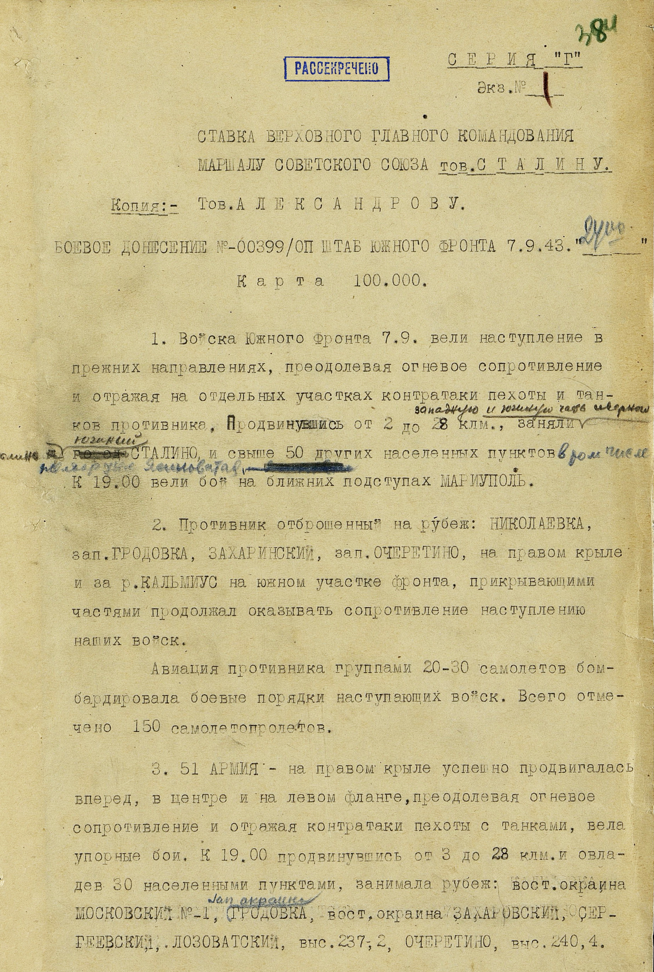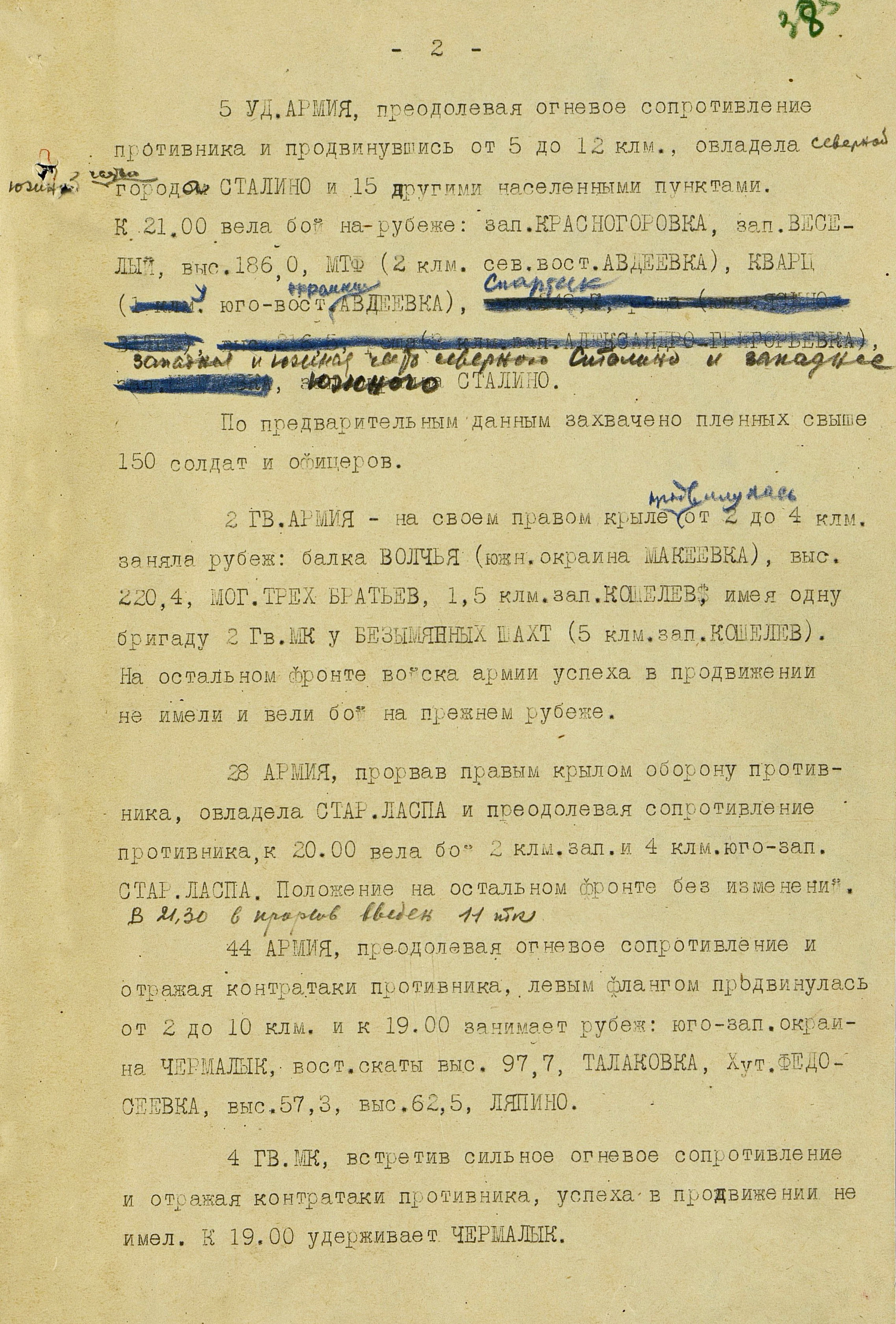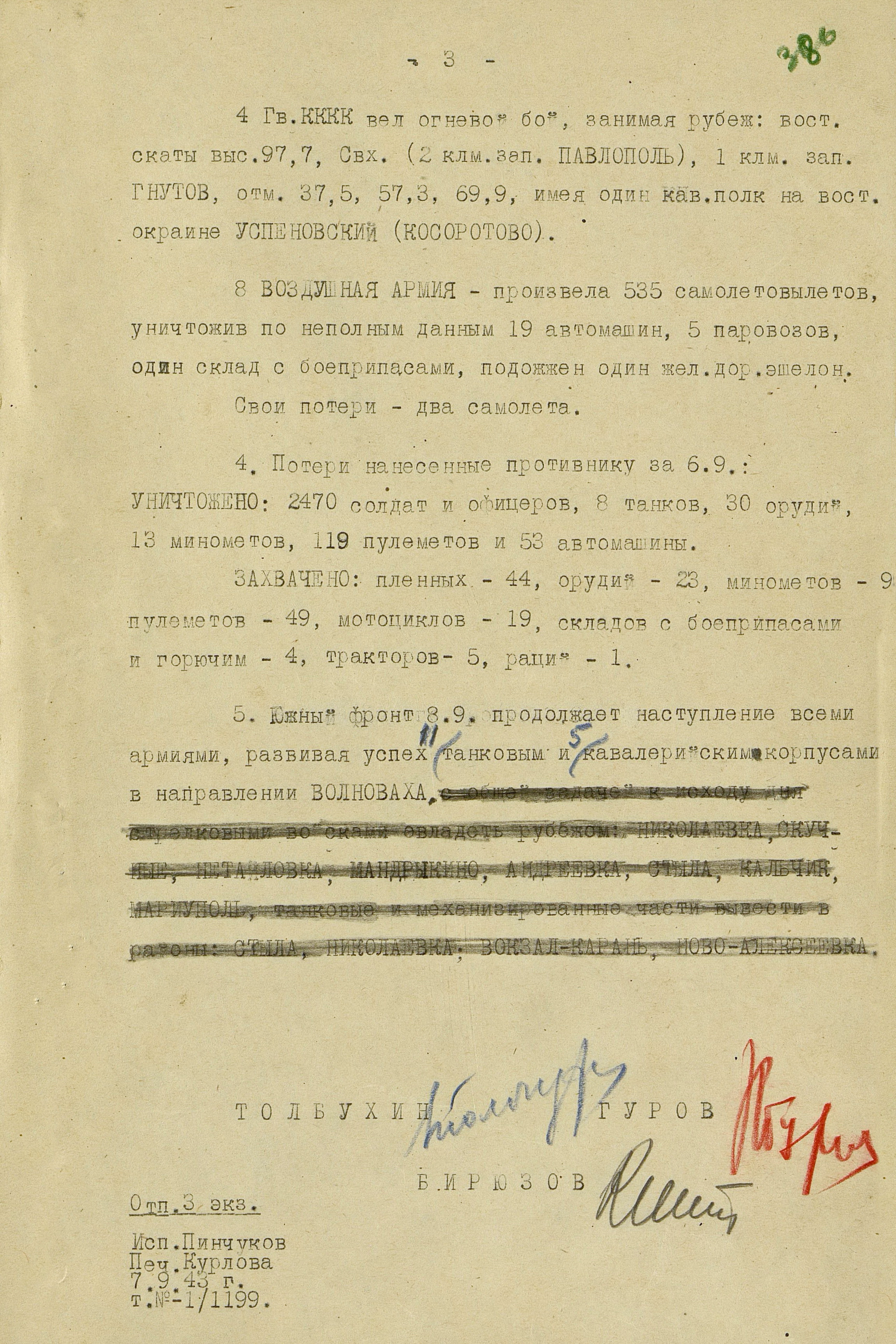 Войска Юго-Западного (генерал армии Р.Я. Малиновский) и Южного (генерал-полковник, с 21 сентября генерал армии Ф.И. Толбухин) фронтов к середине февраля 1943 года освободили восточную часть Донбасса и вышли на рубеж по р. Северский Донец северо-западнее Ворошиловграда, далее по р. Миус и восточнее Таганрога.