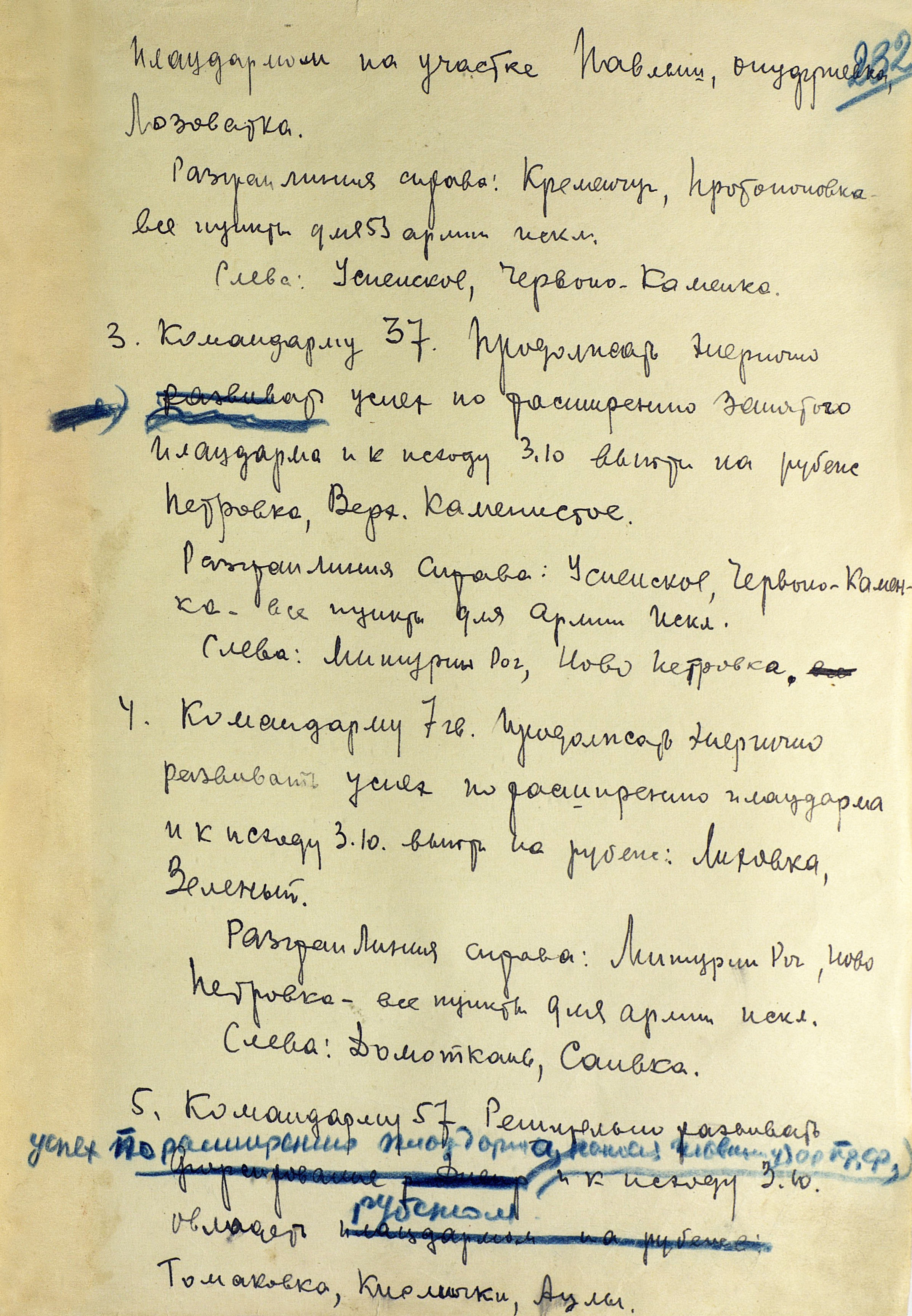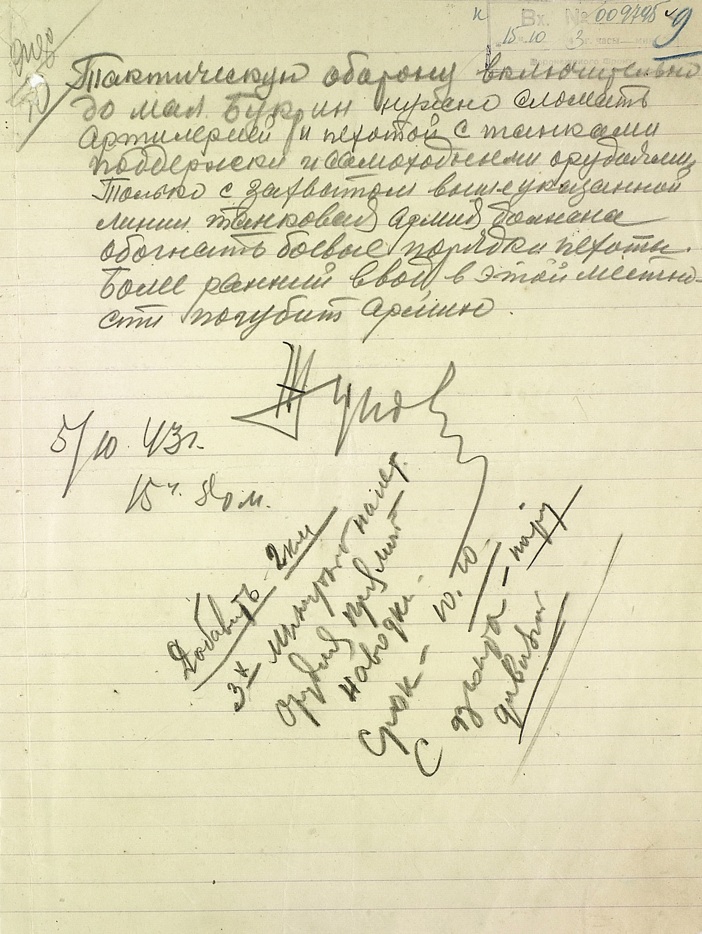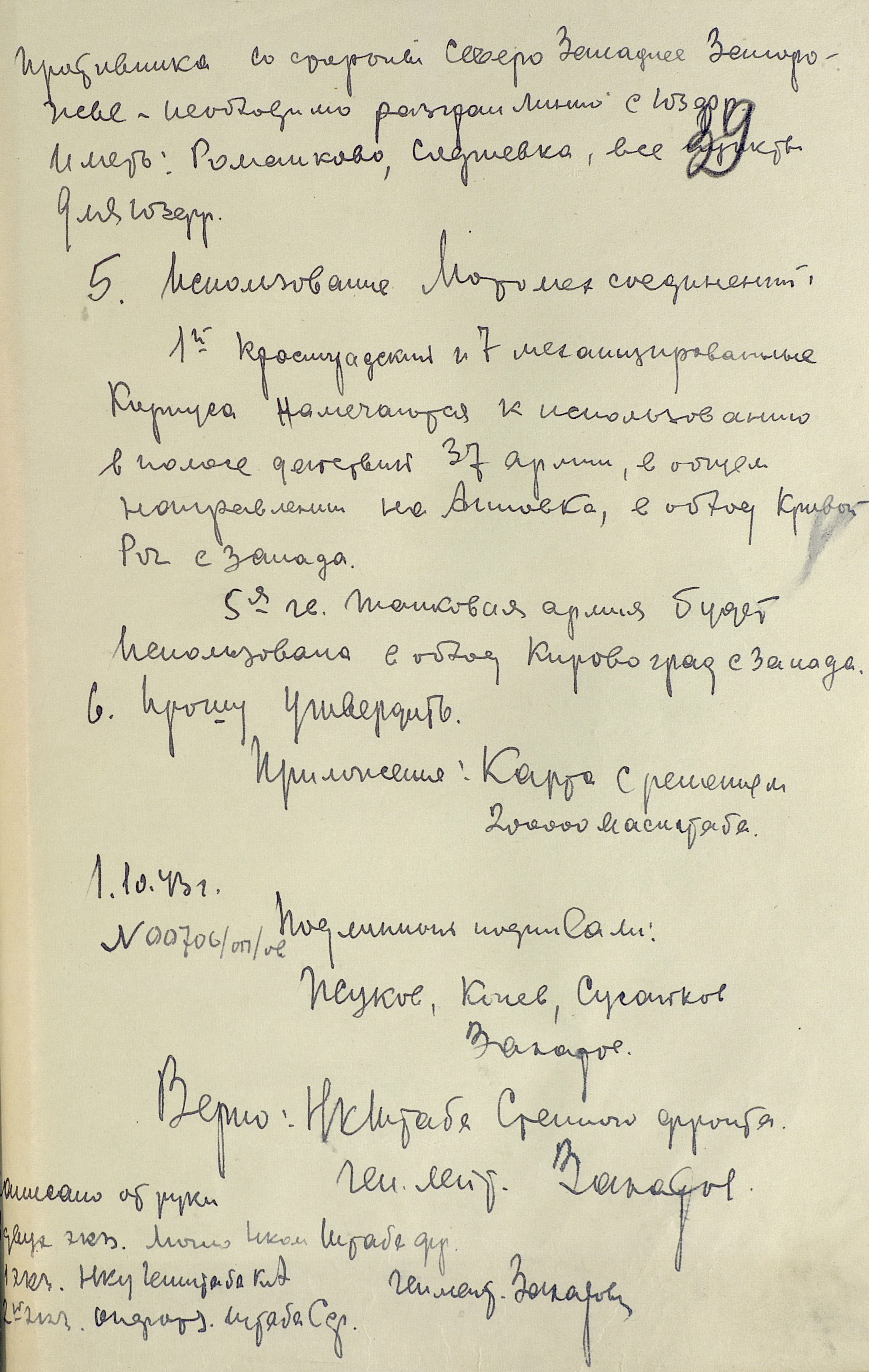 Замыслом советского Верховного главнокомандования (ВГК) предусматривалось не допустить планомерного отхода противника за Днепр, выйти к реке на широком фронте и создать стратегический плацдарм на её правом берегу. Главные удары наносились на кременчугском, днепропетровском и мелитопольском направлениях. Фронтовые операции были нацелены на разгром группировок противника в важных экономических районах и центрах страны. Степной фронт должен был разгромить кременчугско-криворожскую группировку противника и выйти в тыл немецких войск в районе Днепропетровска. Юго-Западному фронту предстояло ликвидировать запорожский плацдарм противника, расширить захваченные плацдармы на правом берегу Днепра и во взаимодействии со Степным фронтом разгромить группировку врага в районе Днепропетровска и Кривого Рога. Южный фронт имел задачу прорвать оборону противника на р. Молочная, развернуть наступление на Каховку и Херсон, а также на Армянск, частью сил - на Сальково, блокировать с суши его группировку в Крыму и по возможности ворваться на полуостров для его полного освобождения.