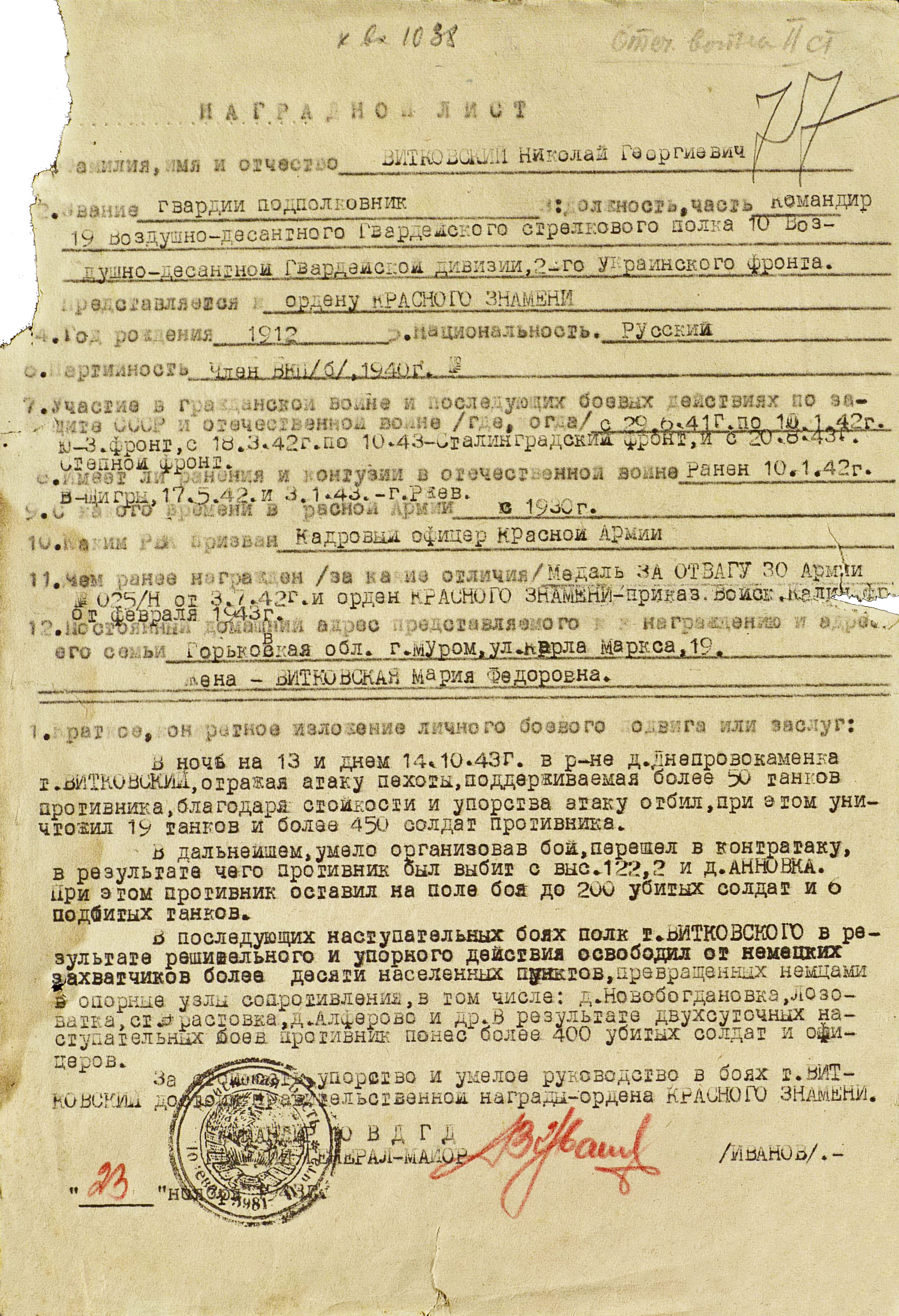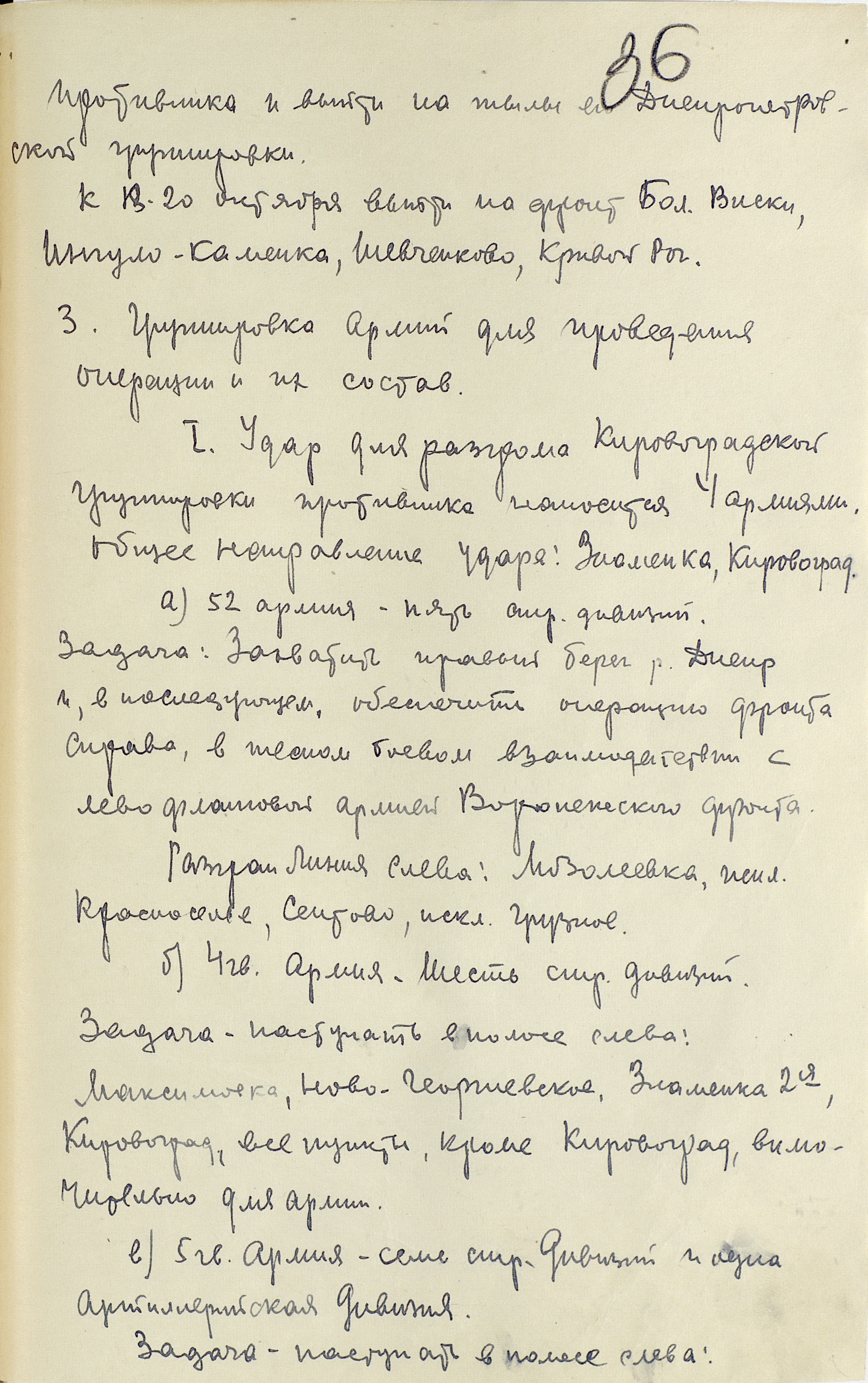 Начало наступлению в низовьях Днепра положили Мелитопольская и Кременчугская наступательные операции 1943 г. В ходе Мелитопольской операции войска Южного фронта продвинулись на запад и юго-запад на 50-320 км. К исходу 5 ноября вышли к низовьям Днепра и захватили плацдарм на южном берегу Сиваша. Вся Северная Таврия была освобождена. Противнику удалось сохранить лишь небольшой плацдарм на левом берегу Днепра в районе Никополя. Крымская группировка была блокирована с суши, созданы условия для освобождения Крыма и Правобережной Украины. В результате Кременчугской операции войска правого крыла Степного фронта 29 сентября освободили Кременчуг, форсировали Днепр и к 10 октября овладели небольшими плацдармами на его правом берегу. Войска левого крыла Юго-Западного фронта, осуществив 10-14 октября Запорожскую наступательную операцию 1943 г., 14 октября ночью штурмом овладели г. Запорожье, 19 октября г. Пятихатки, и завершили ликвидацию вражеского плацдарма. В результате были значительно улучшена обстановка на южном крыле советско-германского фронта, войска Юго-Западного фронта получили возможность более активно вести борьбу за расширение плацдармов на Днепре и развернуть наступление на криворожском направлении. Благоприятные условия складывались и для наступления Южного фронта и его выхода к низовьям Днепра. Войска правого крыла 3-го Украинского фронта 23 октября начали Днепропетровскую наступательную операцию 1943 г., освободили 25 октября Днепропетровск и Днепродзержинск, форсировали Днепр на ряде участков и к исходу 28 октября продвинулись до 50 км западнее Днепра. Немецкое командование стремилось задержать дальнейшее наступление советских войск на кировоградском и криворожском направлениях. На криворожское направление были переброшены из Западной Европы и с других участков фронта 3 танковые, 2 пехотные и 1 моторизованная дивизии. Этими силами совместно с действующими в районе Кривого Рога войсками немецкое командование с 24 по 28 октября нанесло ряд контрударов при поддержке крупных сил авиации в районе Кривого Рога и восточнее Кировограда, в результате которых советские войска были вынуждены отойти на р. Ингулец и там закрепиться. Контрудары противника продолжались и в начале ноября. Тем не менее Ставка ставила фронтам наступательные задачи. 5 ноября она указала, что первоочередной задачей 2, 3 и 4-го Украинских фронтов является разгром криворожско-никопольской группировки противника. 2-й Украинский фронт, закрепившись на занимаемом рубеже, должен был нанести удар силами 37, 57-й и 5-й гв. танковой армий в общем направлении на Лозоватка, Широкое, овладеть Кривым Рогом, выйти на рубеж Широкое, Апостолово. 3-й Украинский фронт получил задачу правым крылом (46-я армия) нанести удар в направлении Софиевка, Долгинцево, выйти на рубеж Широкое, Апостолово, содействуя 2-му Украинскому фронту в овладении Кривым Рогом. 4-й Украинский фронт, продолжая бои за освобождение Крыма, главные усилия направлял на ликвидацию никопольского плацдарма и форсирование Днепра на участке Никополь, Большая Лепетиха. Но во 2-й половине ноября началось наступление противника с никопольского плацдарма и операцию по его овладению пришлось отложить. Перенесено было также начало операции 4-го Украинского фронта по освобождению Крыма. Войска 2-го и 3-го Украинских фронто