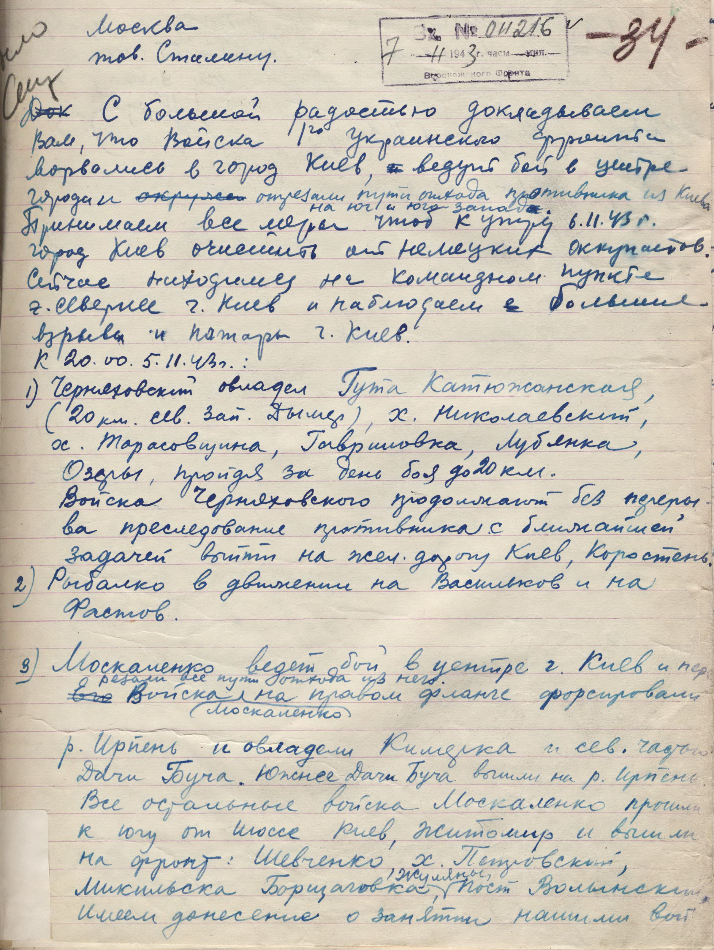 Наступательная операция Степного, Юго-Западного, Южного (с 20 октября соответственно 2-й, 3-й и 4-й Украинские фронты) фронтов Великой Отечественной войны, проведённая с 26 сентября по 23 декабря 1943 года с целью завершить освобождение Левобережной Украины, форсировать Днепр и захватить стратегические плацдармы на его правом берегу. Часть Битвы за Днепр.