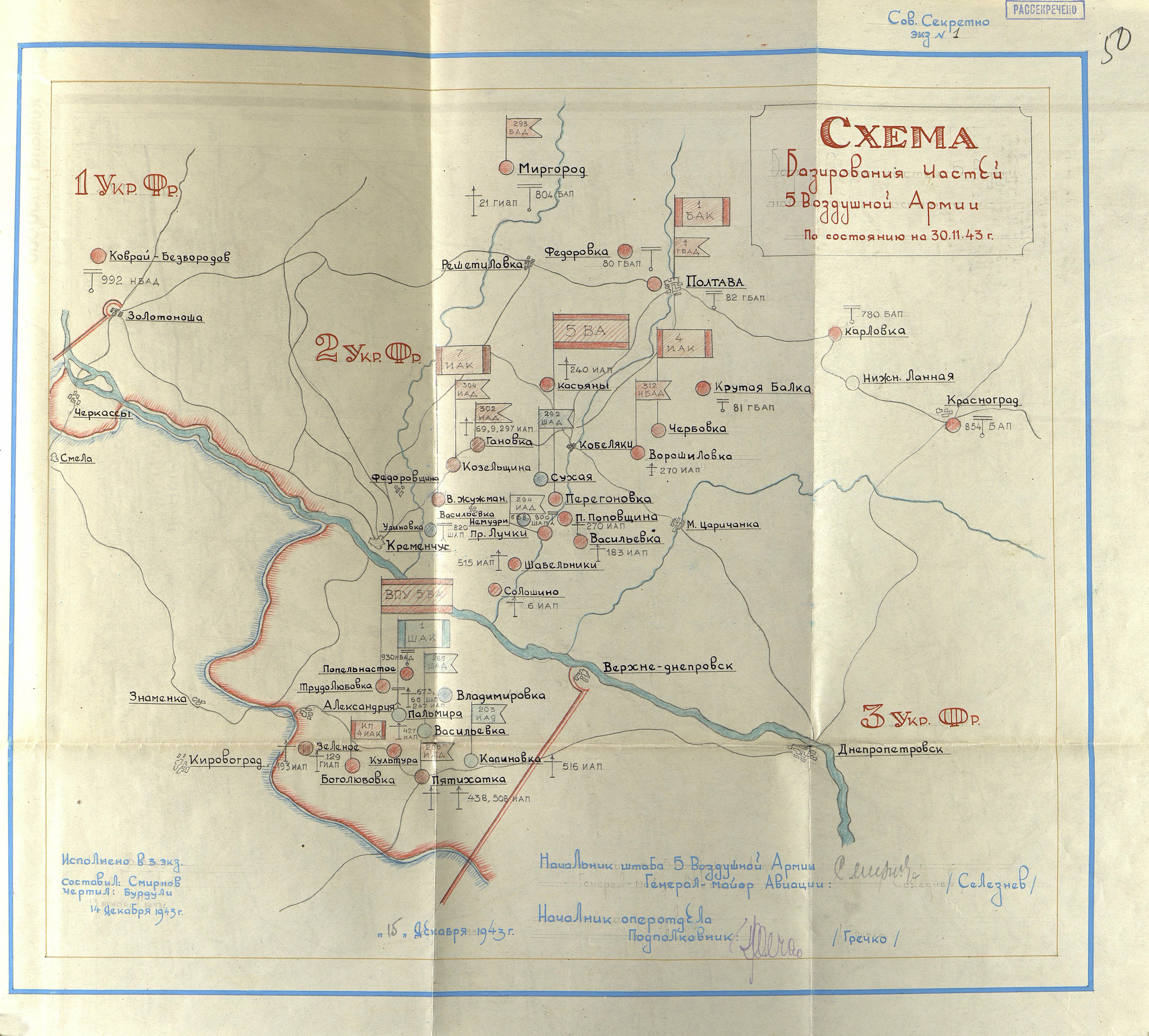 Координацию действий фронтов осуществляли представители Ставки ВГК маршалы Советского Союза Г.К. Жуков (Воронежского и Степного) и А.М. Василевский (Юго-Западного и Южного). Наступательная операция готовилась в сложной обстановке: в ходе преследования противника войска понесли большие потери, отстали тылы, в результате тыловые части и учреждения фронтов не смогли организовать своевременное и бесперебойное снабжение войск горючим, боеприпасами и другими материальными средствами. Нехватка горючего повлекла за собой отставание переправочных средств, артиллерии усиления, а необеспеченность боеприпасами не позволяла осуществлять надёжное артиллерийское обеспечение войск, форсировавших Днепр. Плохие метеорологические условия крайне затрудняли действия авиации и использование подвижных войск.