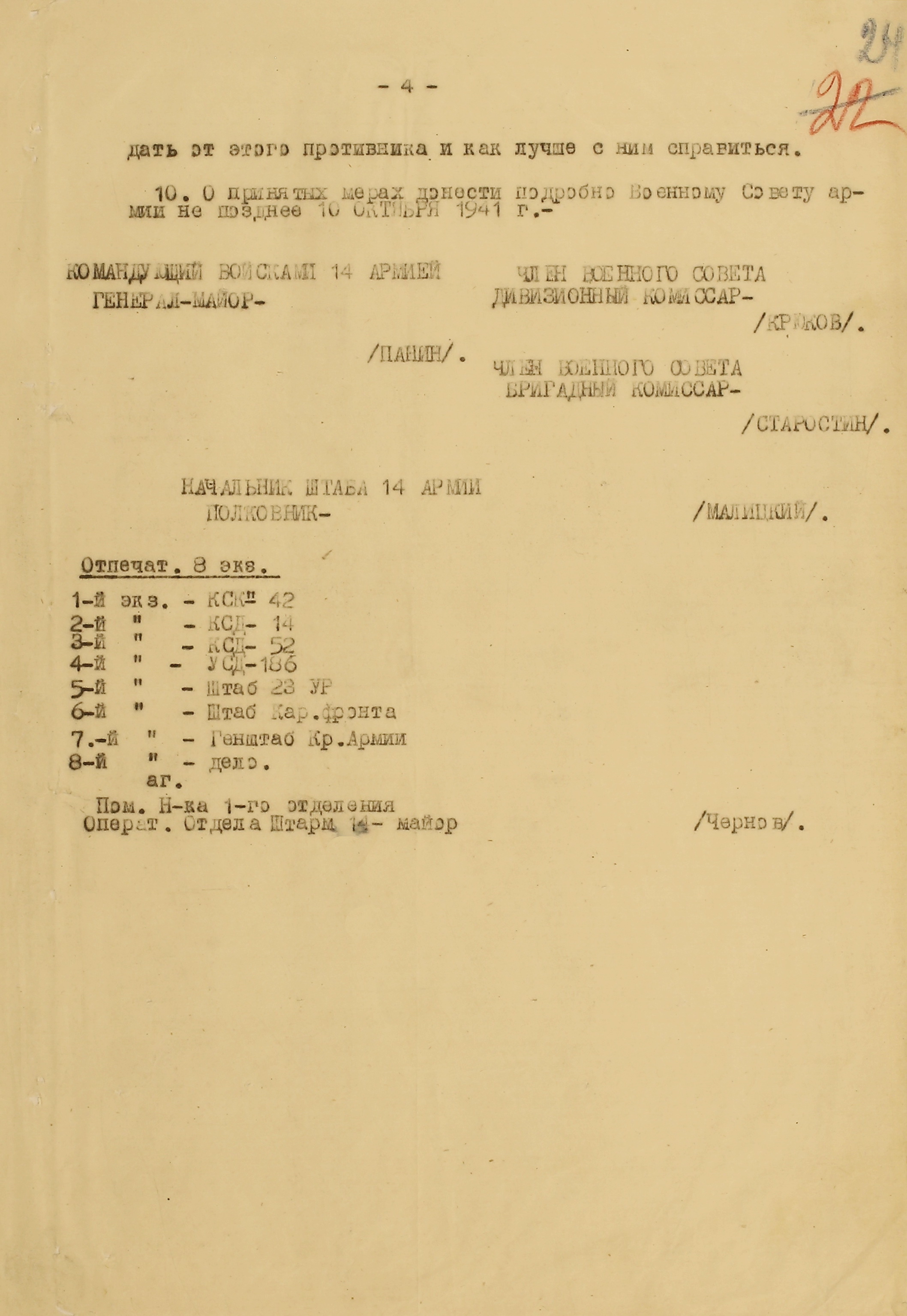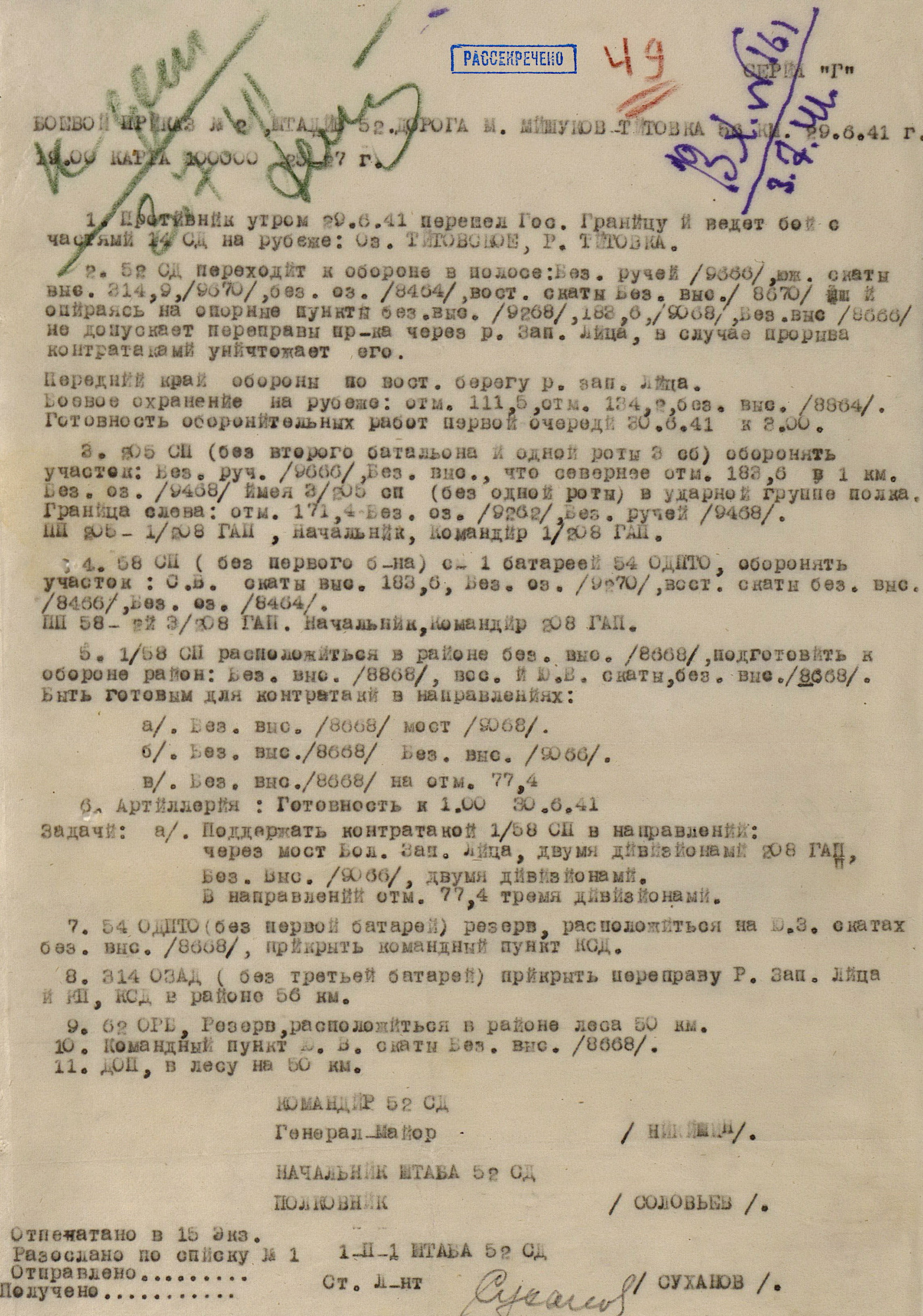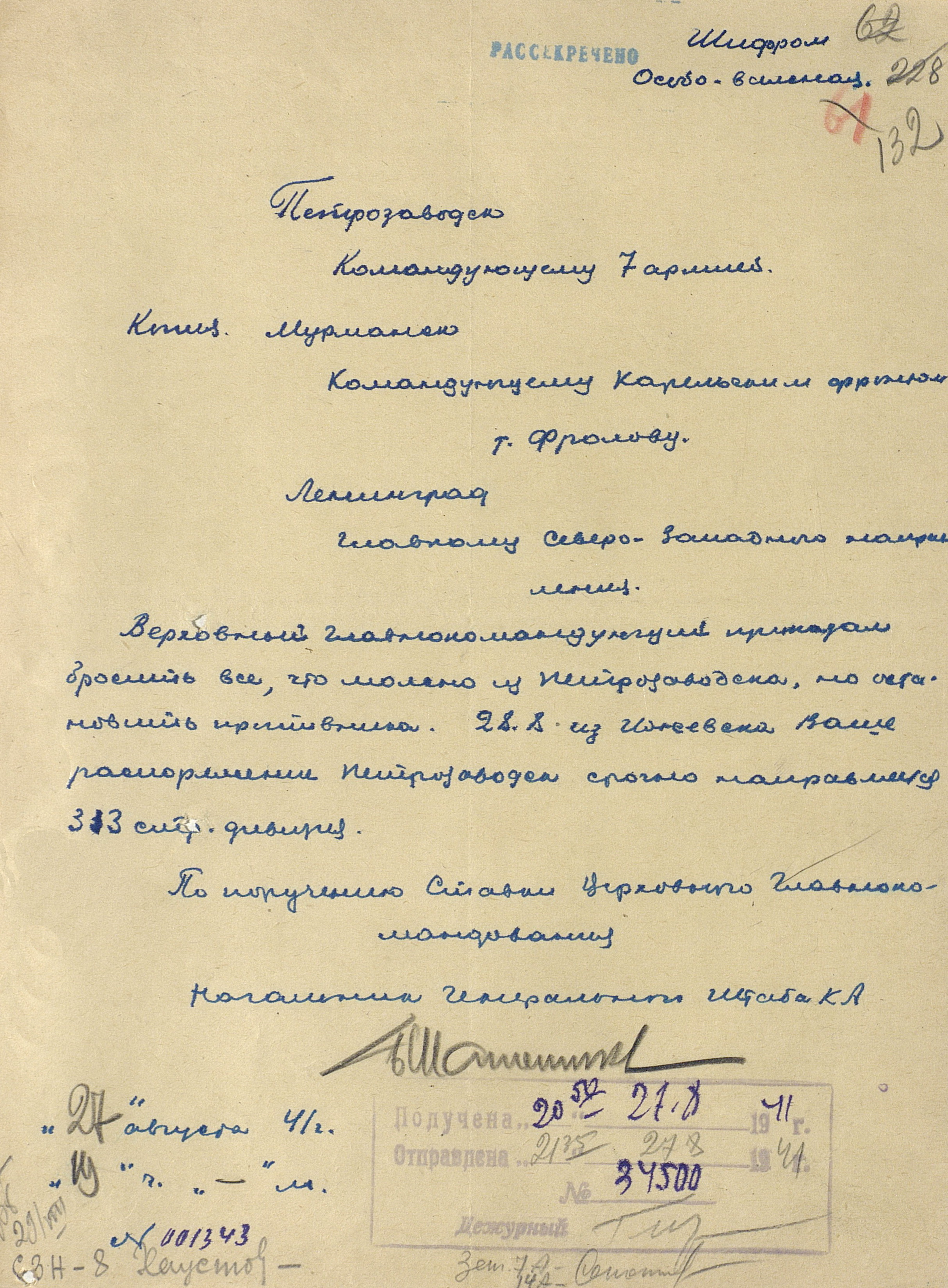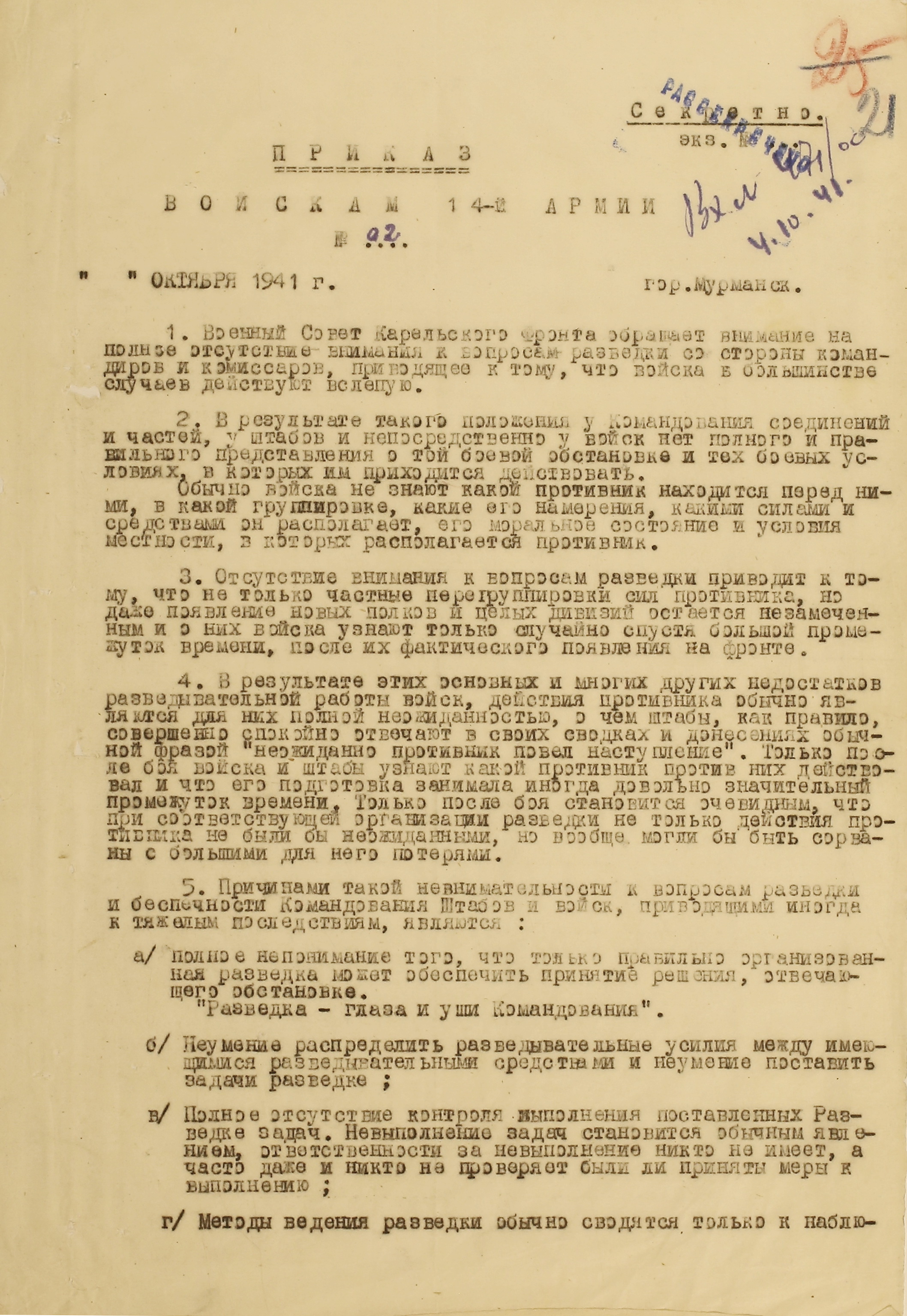 Границу СССР с Норвегией и Финляндией прикрывали войска Северного фронта (генерал-лейтенант М.М. Попов) совместно с Северным флотом (контр-адмирал, с 16.9.1941 г. вице-адмирал А.Г. Головко) - всего 402 тыс. человек, 1543 танка, 7750 орудий и миномётов, 32 надводных корабля, 15 подводных лодок, 1794 самолета. В соответствии с планом прикрытия Государственной границы перед армиями стояла задача не допустить прорыва противника на важнейших направлениях. Войска Северного фронта и силы Северного флота к 27 июня были приведены в полную боевую готовность, а стрелковые соединения и части заняли оборонительные позиции у Государственной границы и готовились к отражению вражеского наступления.