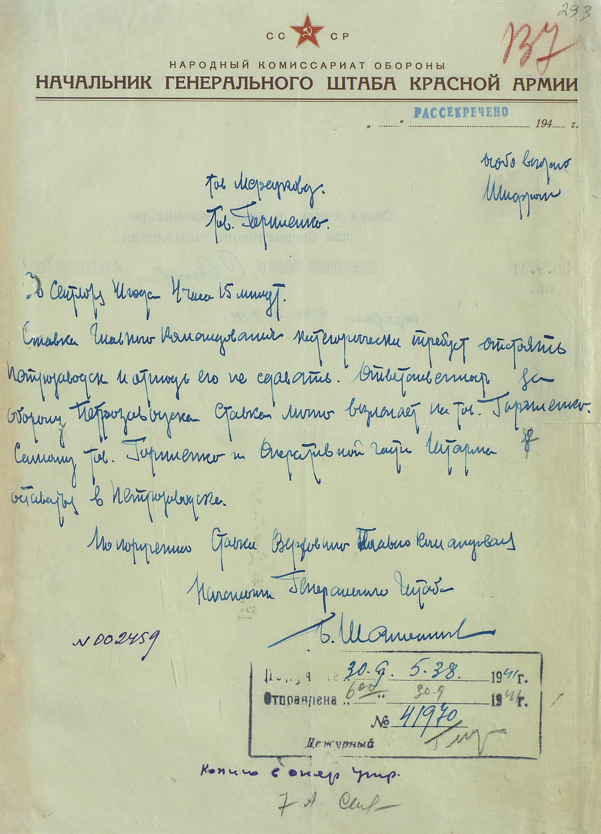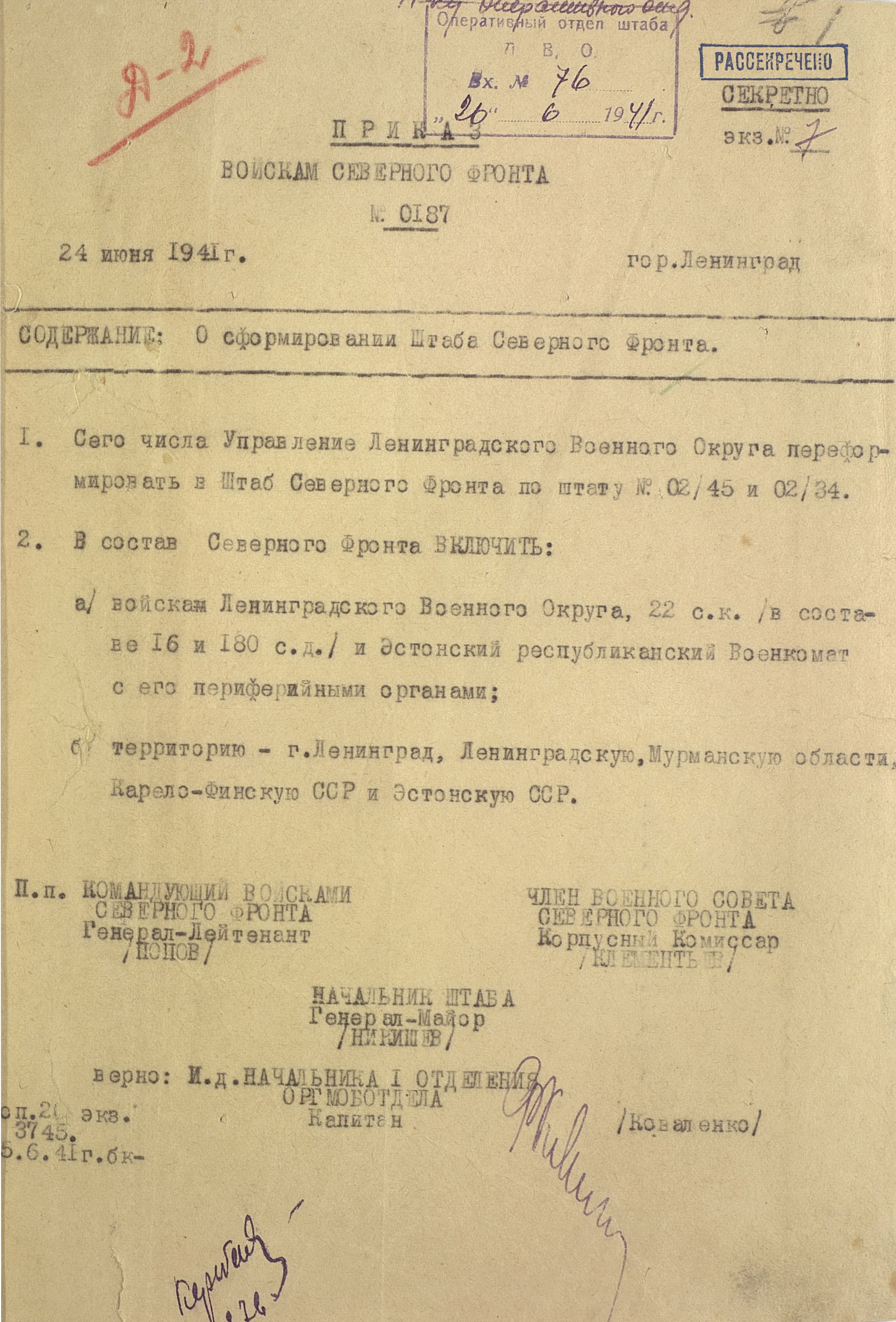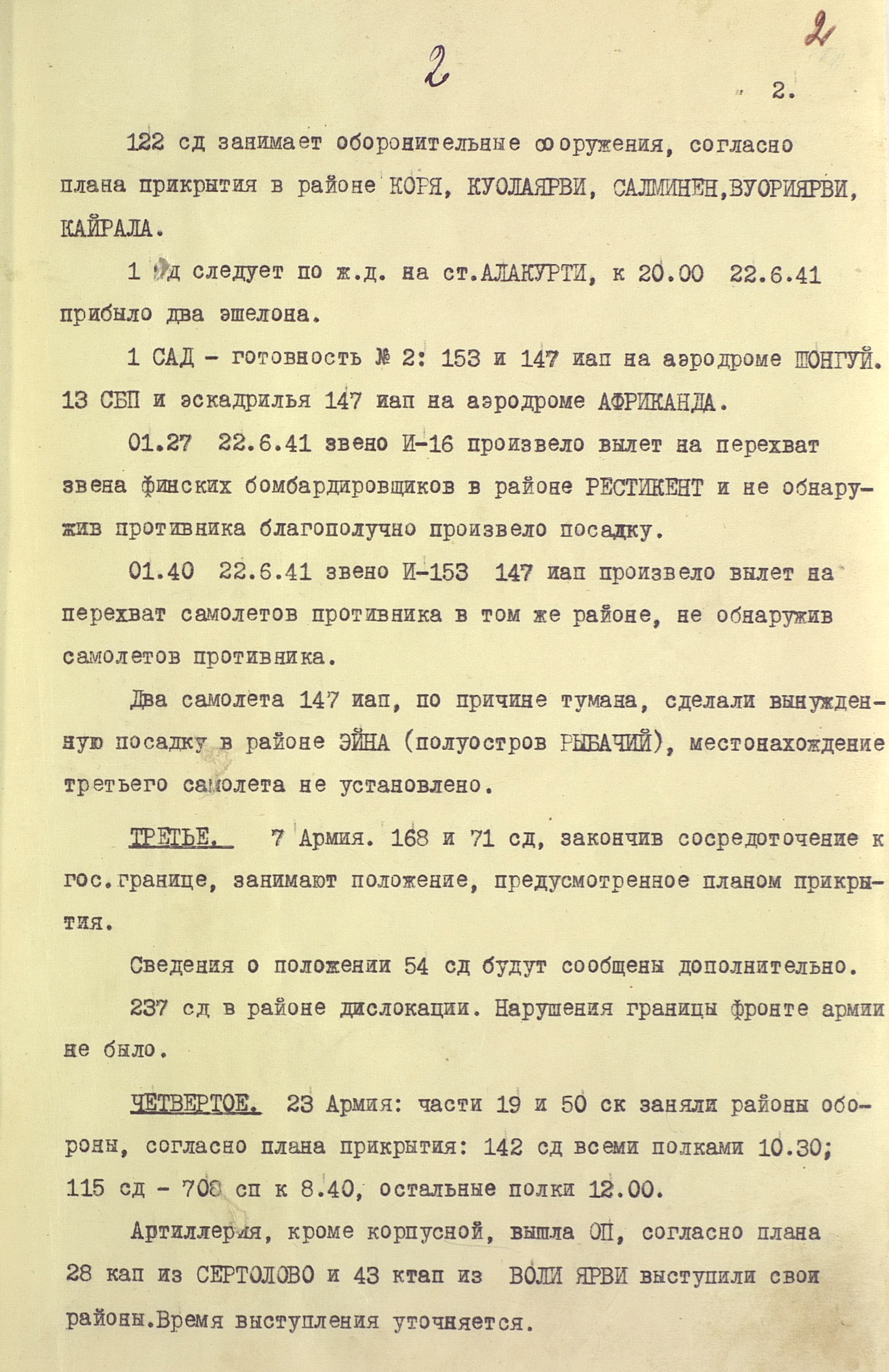 29 июня ударные группировки противника перешли в наступление на мурманском, а 1 июля на кандалакшском и лоухском направлениях. 10 июля нанесли удар основные силы финской Карельской армии на олонецком и петрозаводском направлениях. 31 июля на Карельском перешейке начала наступление финская Юго-Восточная армия. Советские войска упорной обороной и контратаками изматывали вражеские группировки. К 1 сентября 23-я армия на Карельском перешейке отошла на линию государственной границы 1939 г. и закрепилась на рубеже Карельского укреплённого района. Ставка Главного Командования 23 августа разделила Северный фронт на Ленинградский (в его состав вошла 23-я армия) и Карельский (14-я и 7-я армии; генерал-лейтенант В.А. Фролов) фронты. В полосе 14-й армии в результате упорных боёв к 23 сентября противник был остановлен, и фронт в основном стабилизировался на рубеже р. Западная Лица, по системе рек и озёр в 90 км западнее Кандалакши и 40 км западнее Лоухи. В полосе 7-й армии войска финской Карельской армии захватили Выборг (29 августа), Олонец (5 сентября), Петрозаводск (2 октября), но к 10 октября были остановлены на рубеже Ухта, Рог озеро, станция Масельская, Онежское озеро, р. Свирь.