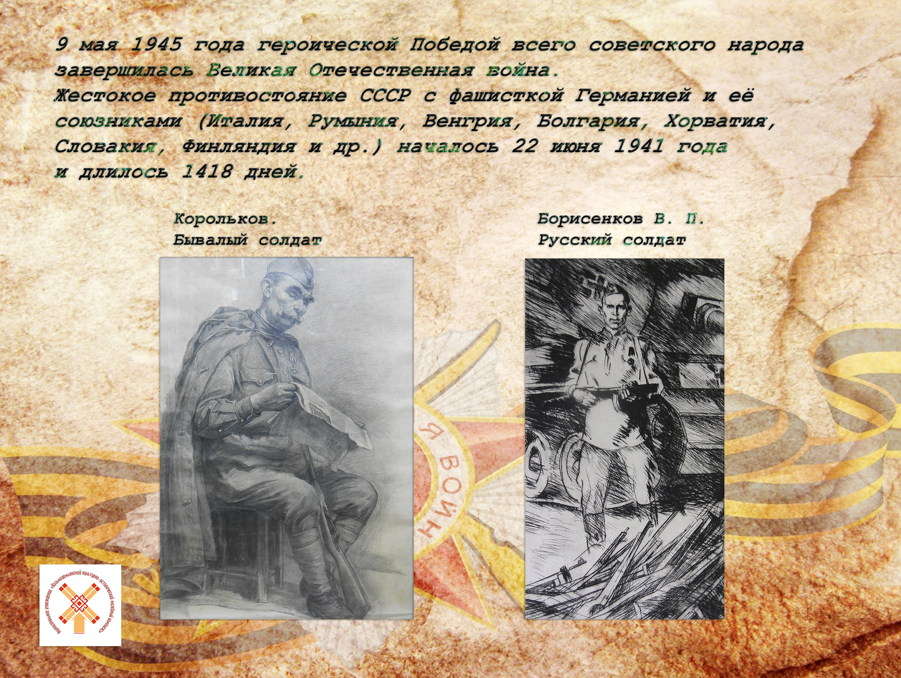 Графические произведения советских художников, посвящённые годовщине Победы.