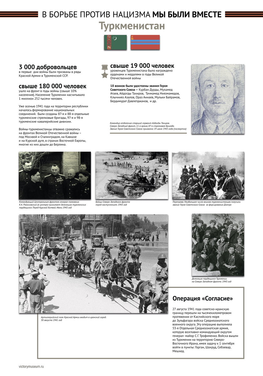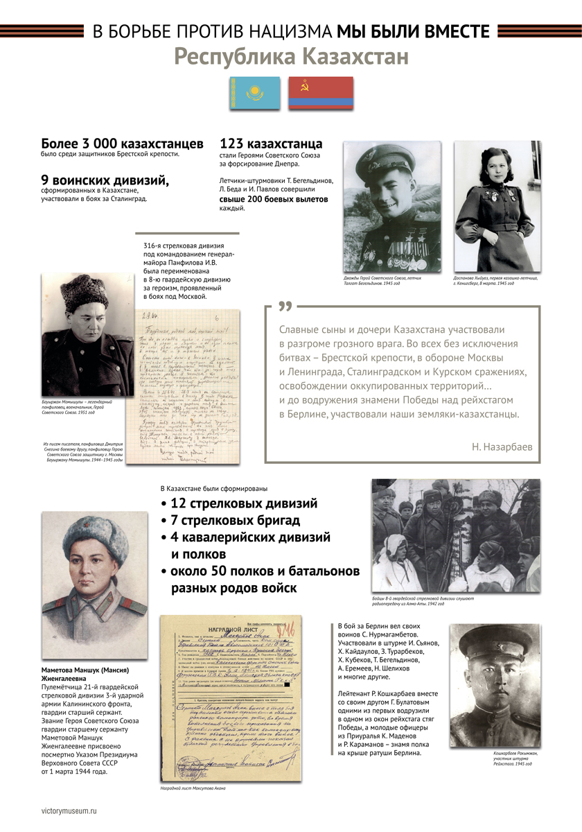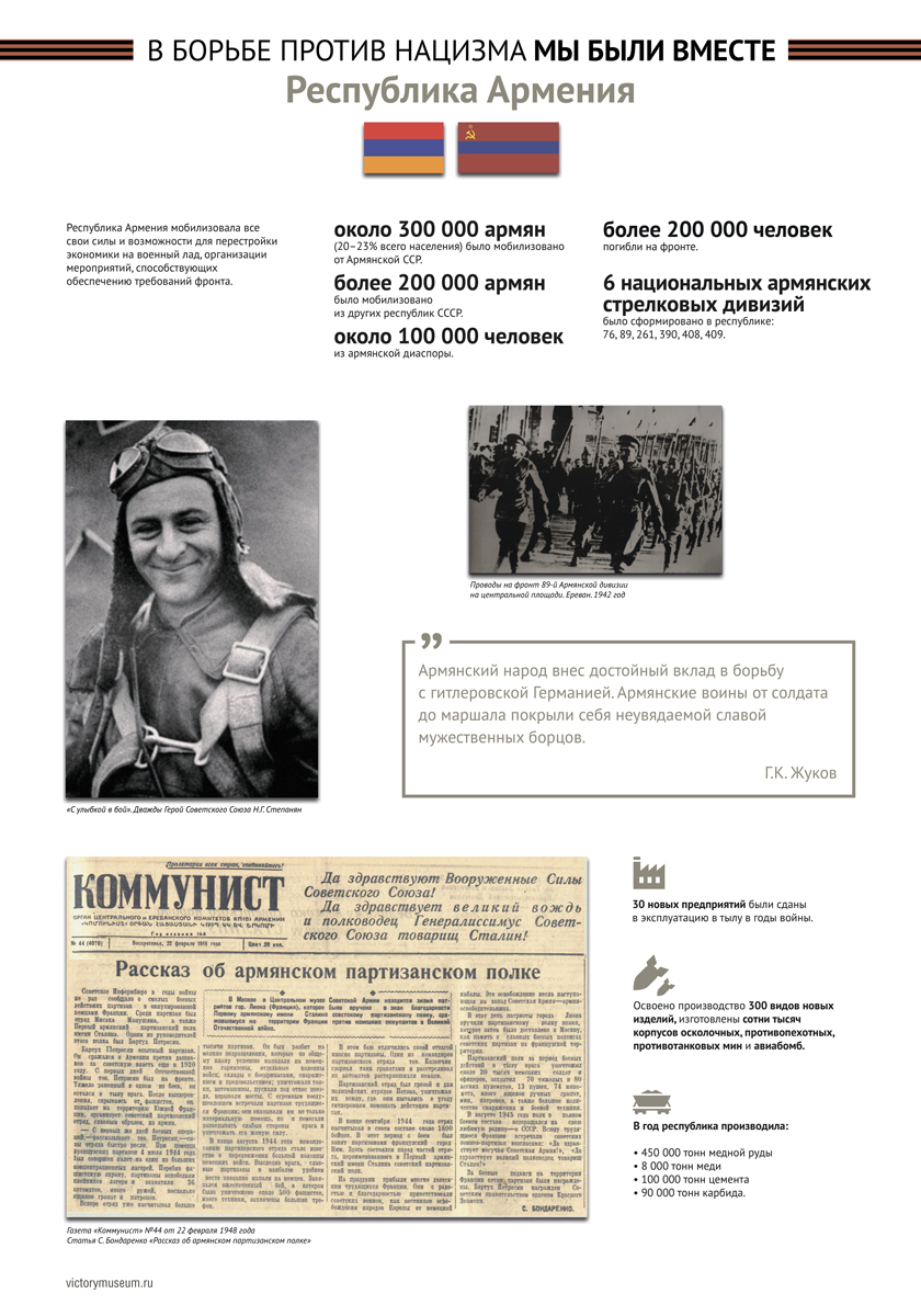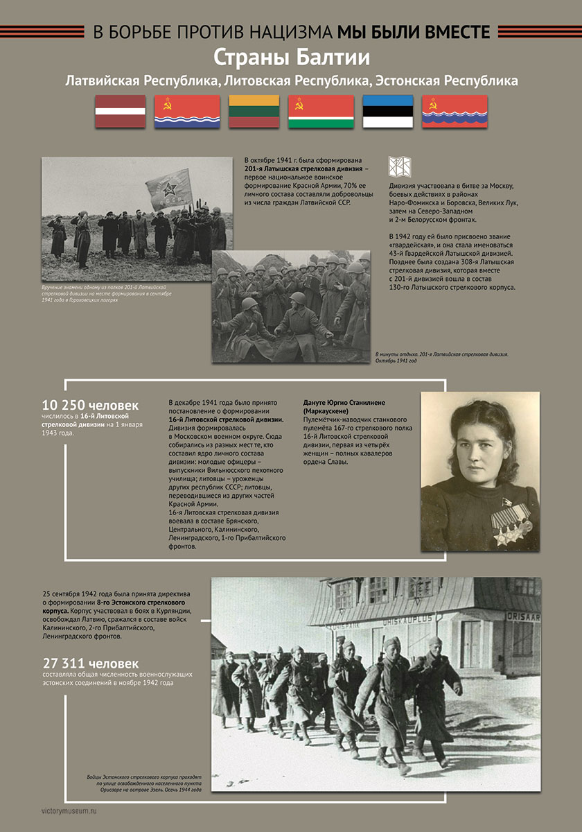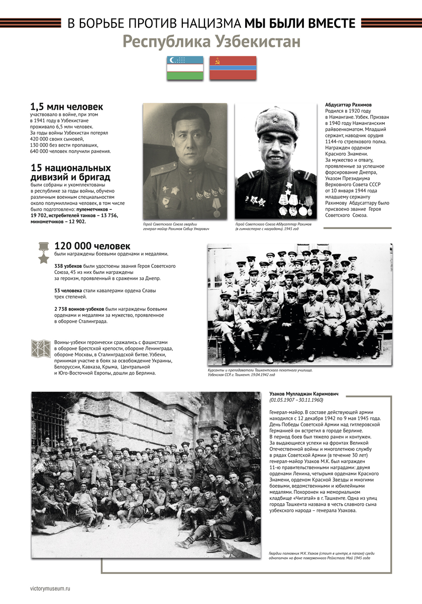 В выставке будут отражены основные этапы Великой Отечественной войны и раскрыт боевой и трудовой вклад граждан этих республик в общую Победу над немецко-фашистскими захватчиками.