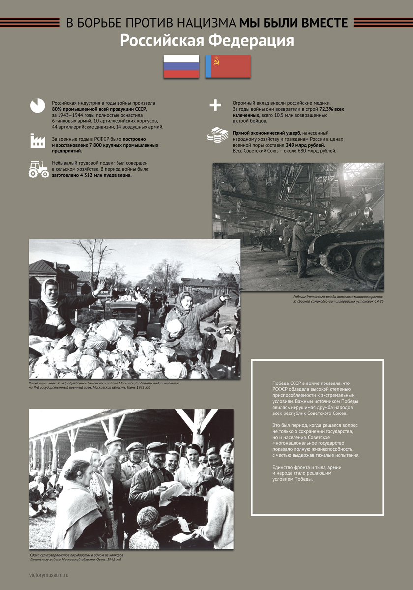 Состоит из 15 разделов, каждый из которых посвящен одной из республик, входивших в состав СССР в долгожданную Победу.